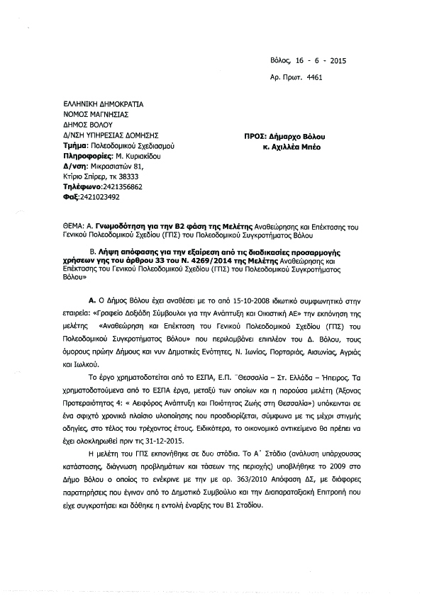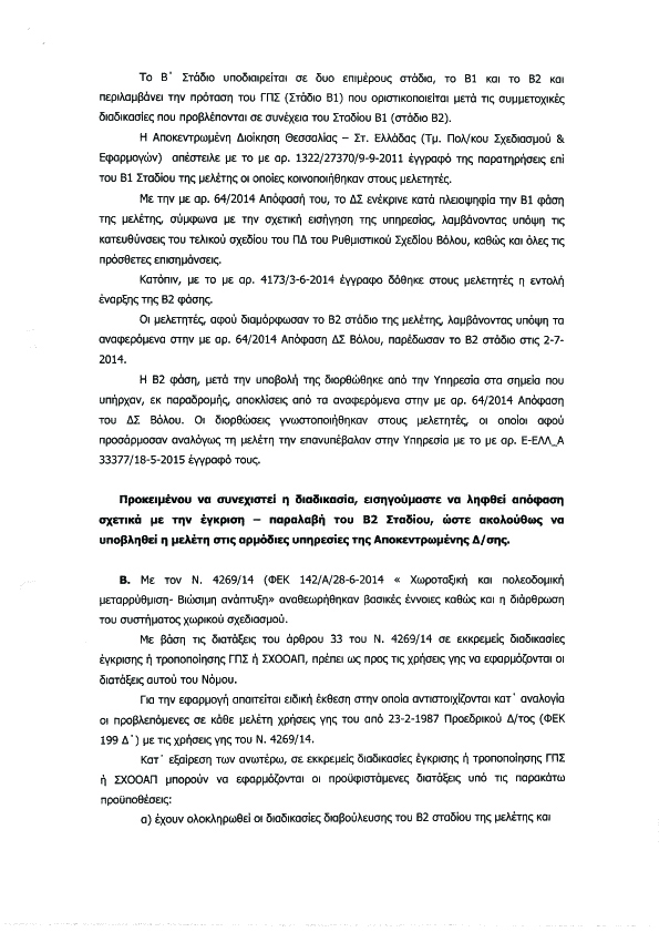1. Για ποιο λόγο ζητήσανε τις συγκεκριμένες επεκτάσεις που αναφέρονται στο υπ. αριθμ, 4460/16-6-2015 έγγραφο και εφόσον είχε ολοκληρωθεί η Β2 Φάση του Γενικού Πολεοδομικού Σχεδίου Βόλου;