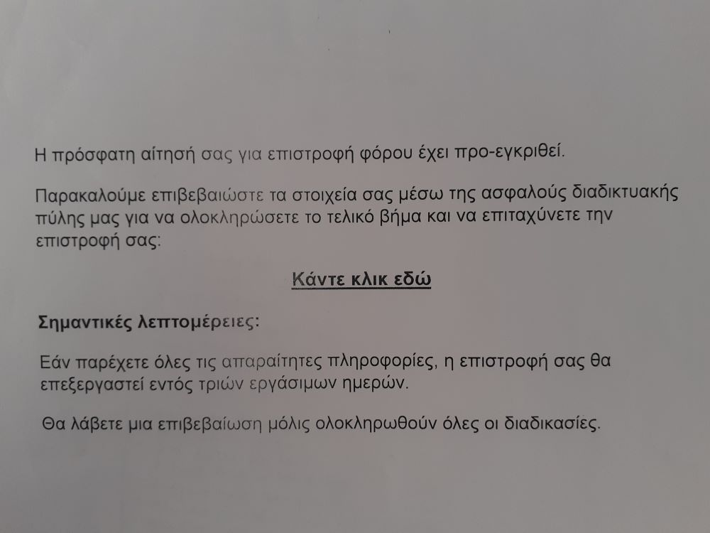Το μήνυμα ουσιαστικά καλεί το θύμα να βάλει μόνο του τα στοιχεία του, με τη δήθεν αναγκαιότητα της επιστροφής κάποιου φόρου. Το συγκεκριμένο μήνυμα αποστέλλεται συχνά πυκνά σε αρκετούς Βολιώτες, οι οποίοι θα πρέπει να είναι υποψιασμένοι και να μην πέσουν στην παγίδα που εμφανίζεται στο ηλεκτρονικό τους ταχυδρομείο.