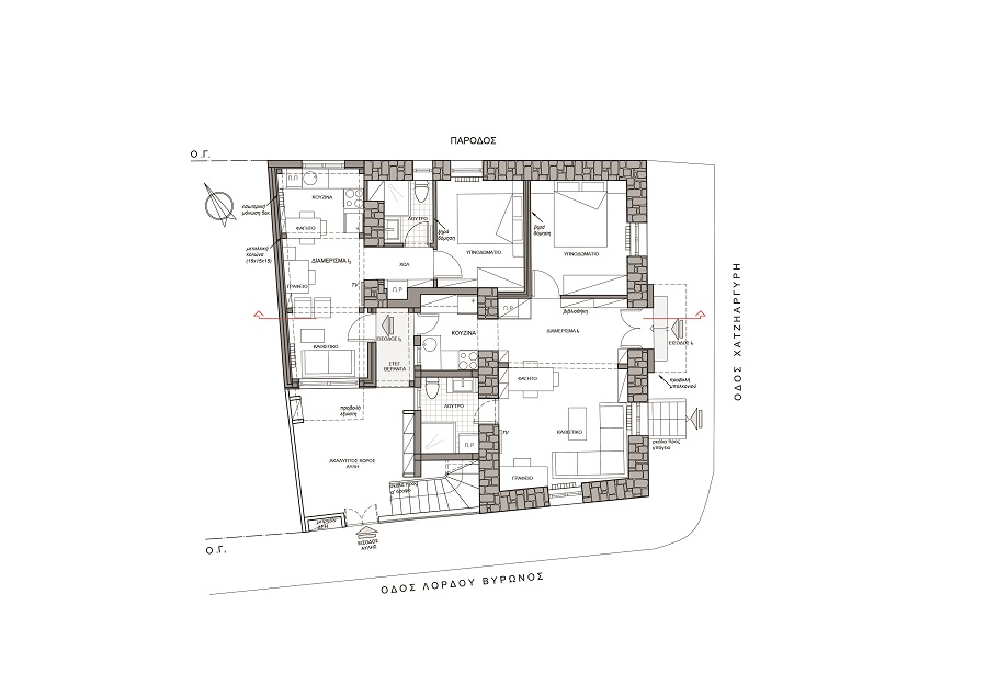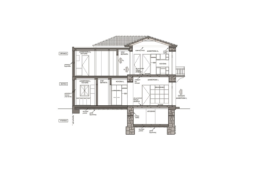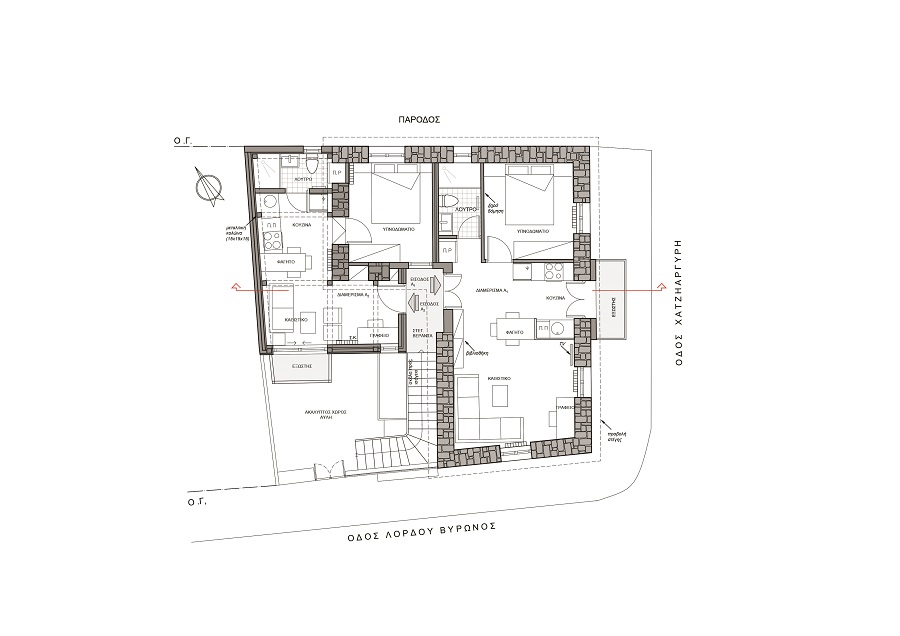 Υφιστάμενη διώροφη πέτρινη κατοικία επί των οδών Λ. Βύρωνος και Χατζηαργύρη