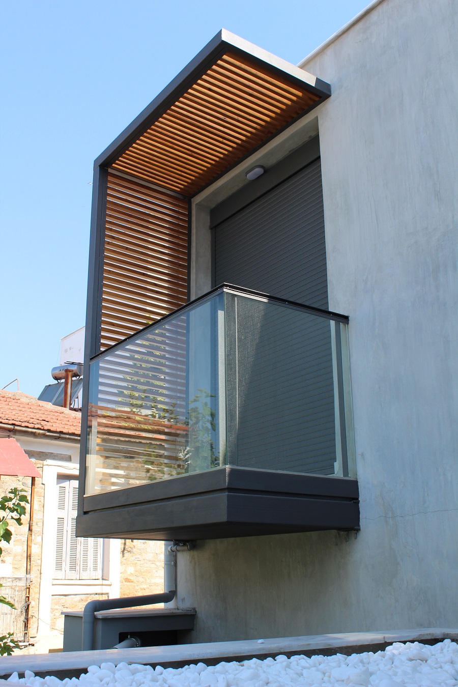 Δύο νέα μορφολογικά και λειτουργικά στοιχεία κατασκευάσθηκαν στην Νότια πλευρά προς την αυλή, ένα μεταλλικό μπαλκόνι με ξύλινη πέργκολα και επικάλυψη φύλλα διαφανούς πολυκαρβονικού, και ένα μεταλλικό στέγαστρο για την προστασία της ανόδου από την σκάλα του Α’ ορόφου.