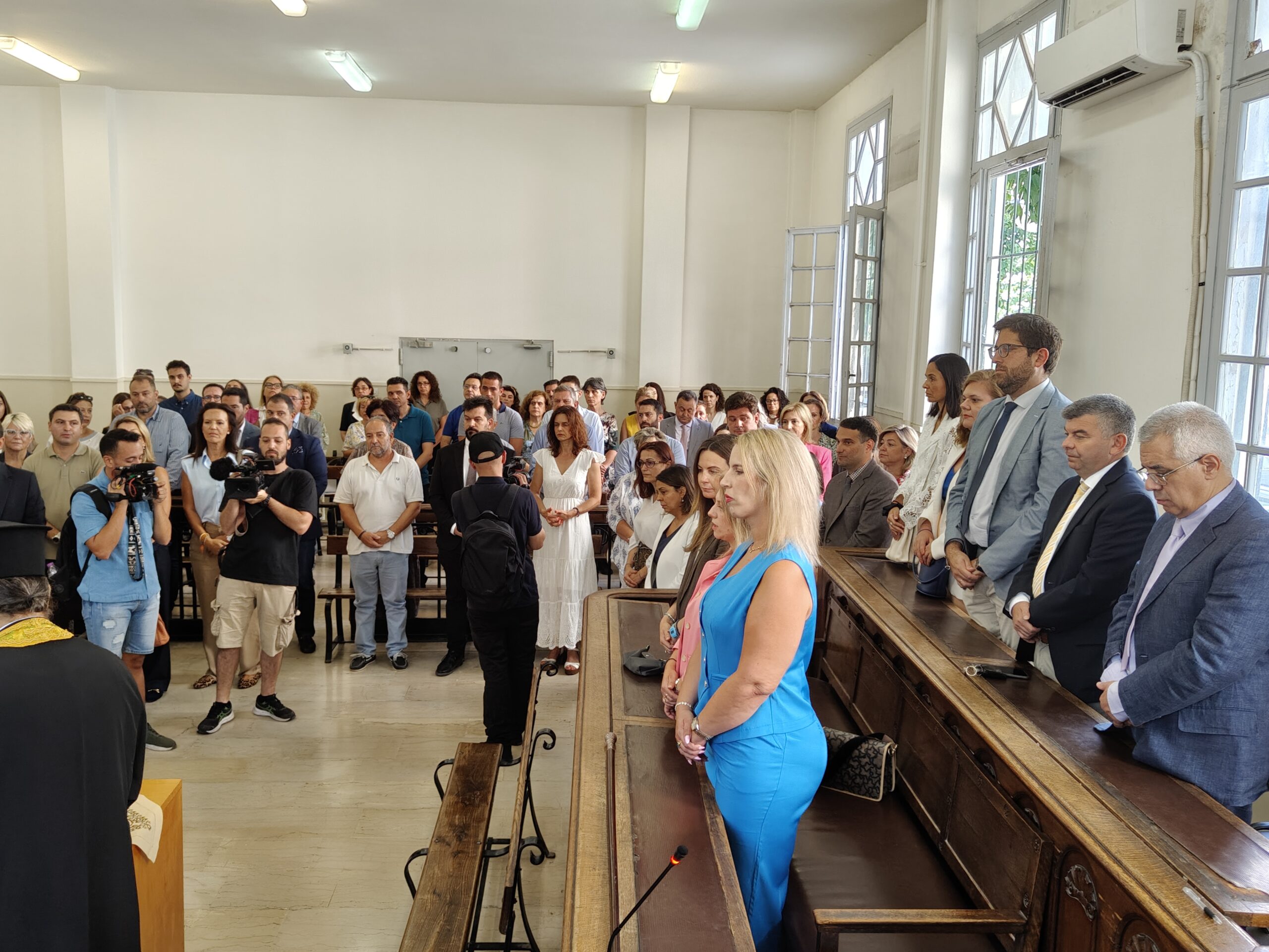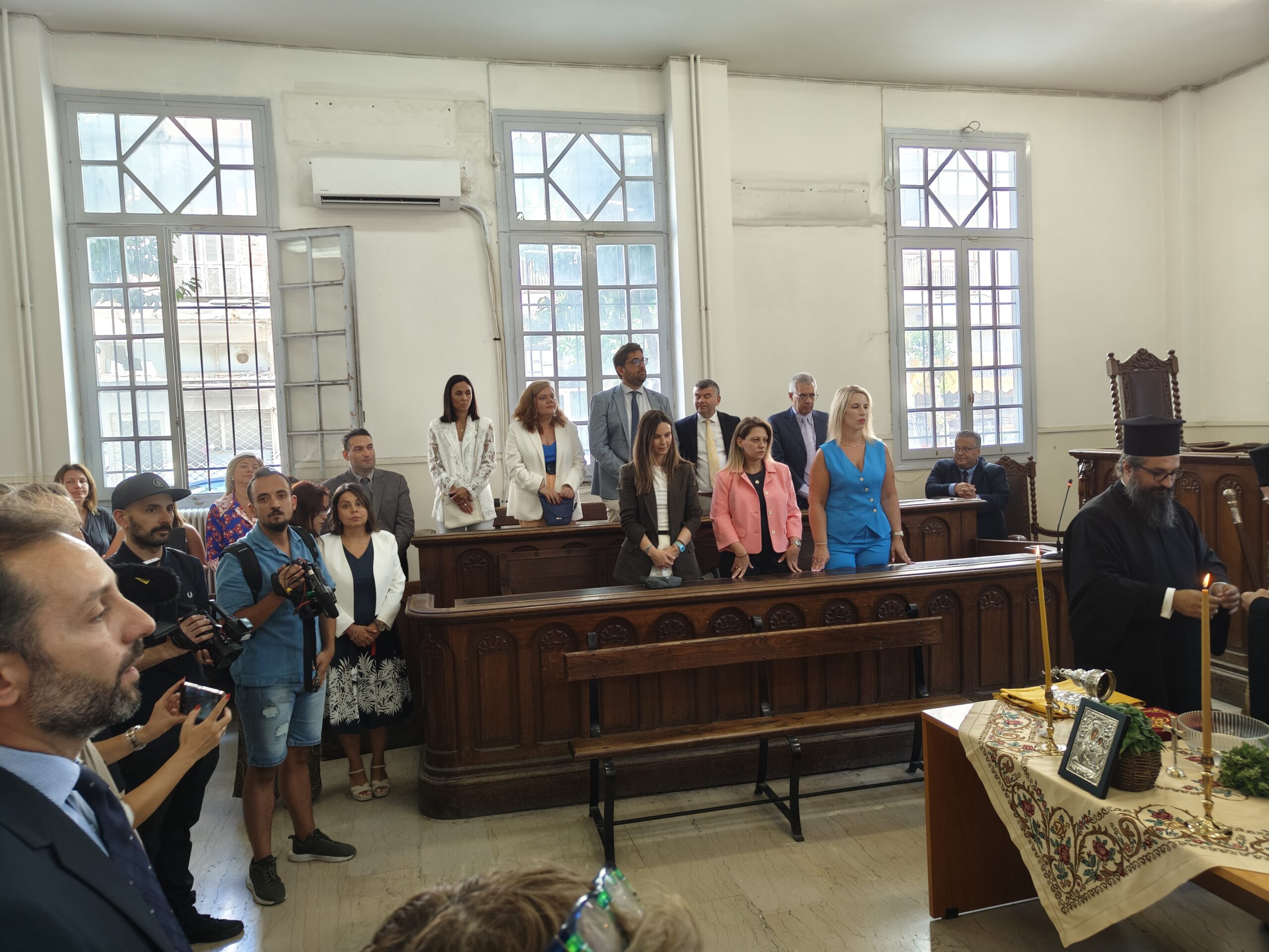 Μετά τον αγιασμό, που έγινε παρουσία της αντιπεριφερειάρχη Μαγνησίας και Σποράδων κ. Άννας – Μαρίας Παπαδημητρίου, δικαστών, εισαγγελέων, δικαστικών υπαλλήλων και δικηγόρων, χαιρετισμό απηύθυναν η προϊσταμένη του Πρωτοδικείου κ. Μαρία Νέσση, η προϊσταμένη της Εισαγγελίας κ. Μαρία Βαΐτση και η πρόεδρος του Συλλόγου Δικαστικών Υπαλλήλων περιφέρειας Πρωτοδικείου Βόλου κ. Γεωργία Ζαχαράκη.