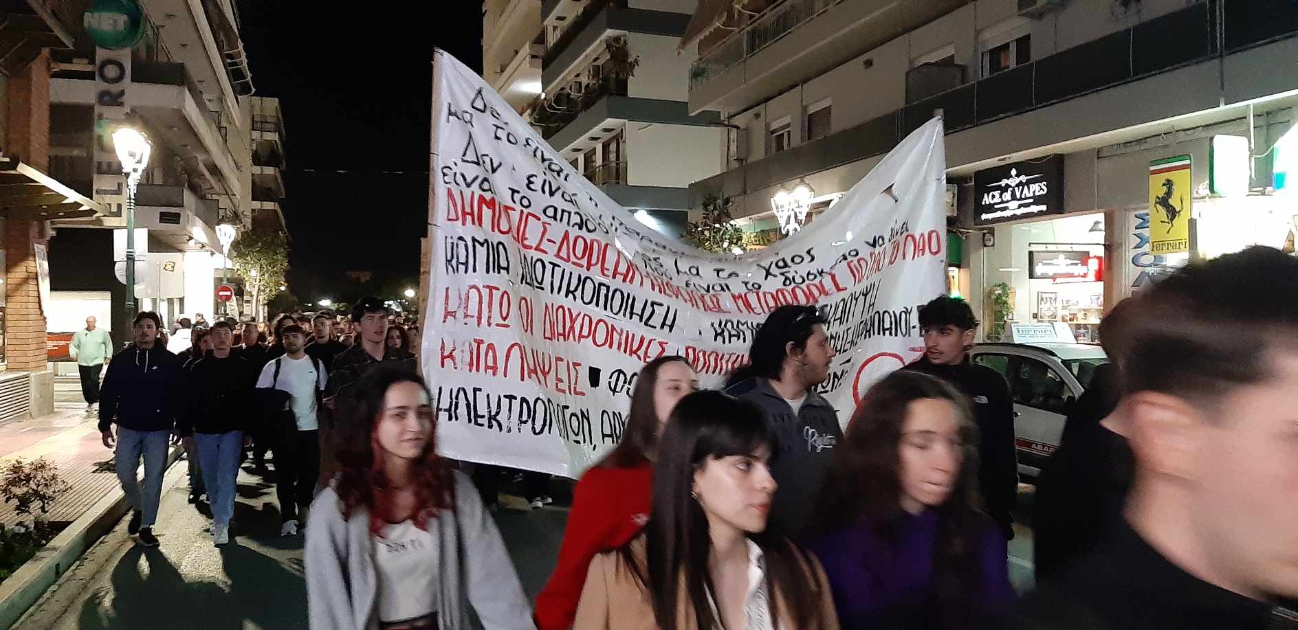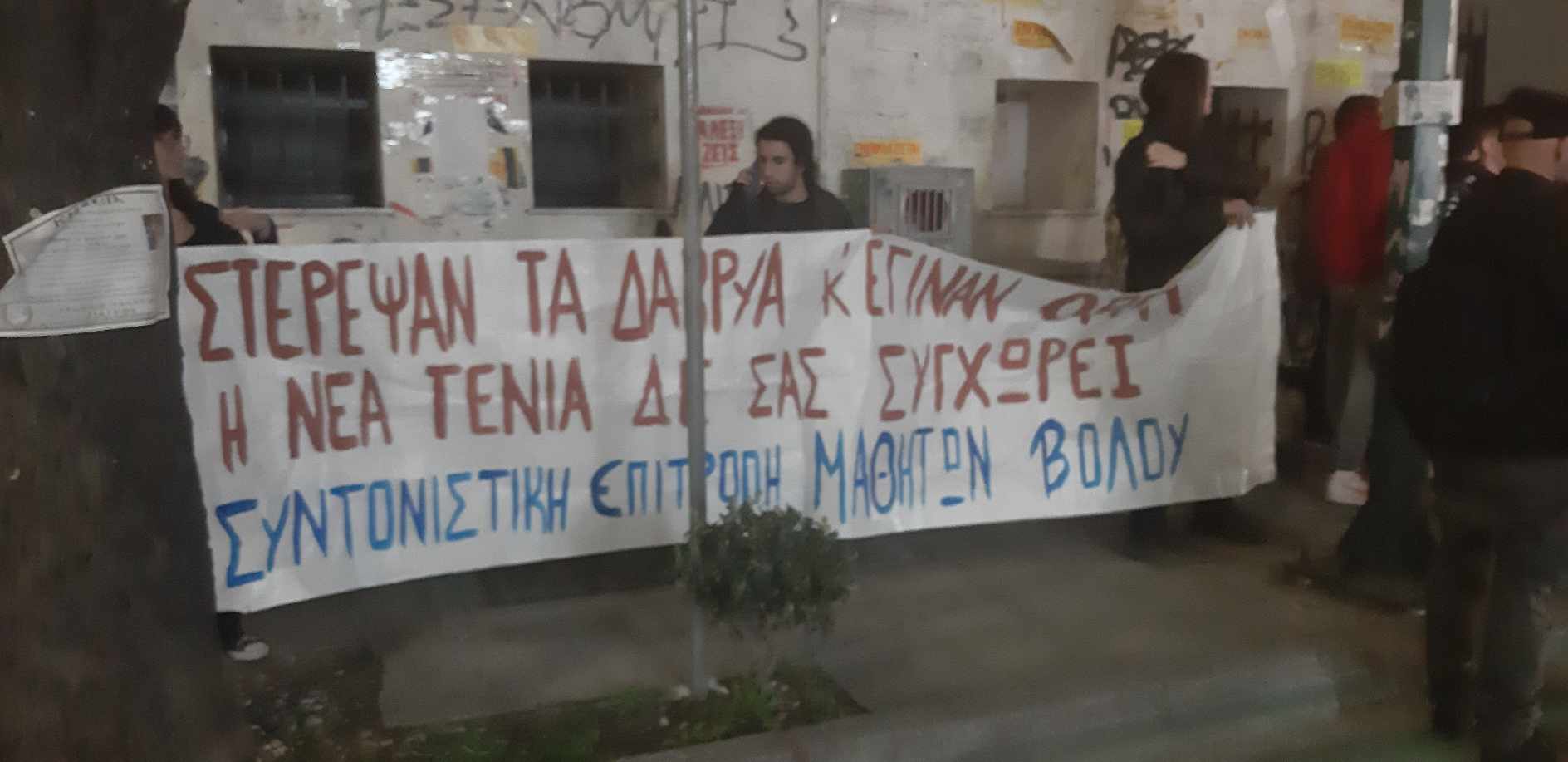 Με δυνατή φωνή και πανό οι φοιτητές διαδήλωσαν στο κέντρο του Βόλου, ενώ τις προηγούμενες ημέρες πολλά τμήματα του Πανεπιστημίου τελούσαν υπό κατάληψη.