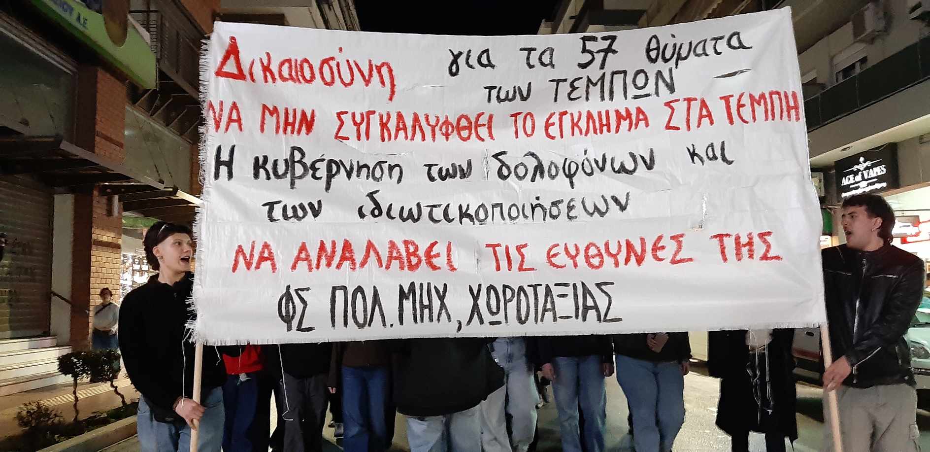 Νέα πορεία στο κέντρο του Βόλου, ζητώντας δικαίωση για το έγκλημα, όπως το χαρακτηρίζουν, των Τεμπών πραγματοποίησαν σήμερα το απόγευμα φοιτητές του Πανεπιστημίου Θεσσαλίας, στο πλαίσιο της σημερινής πανελλαδικής κινητοποίησης.
