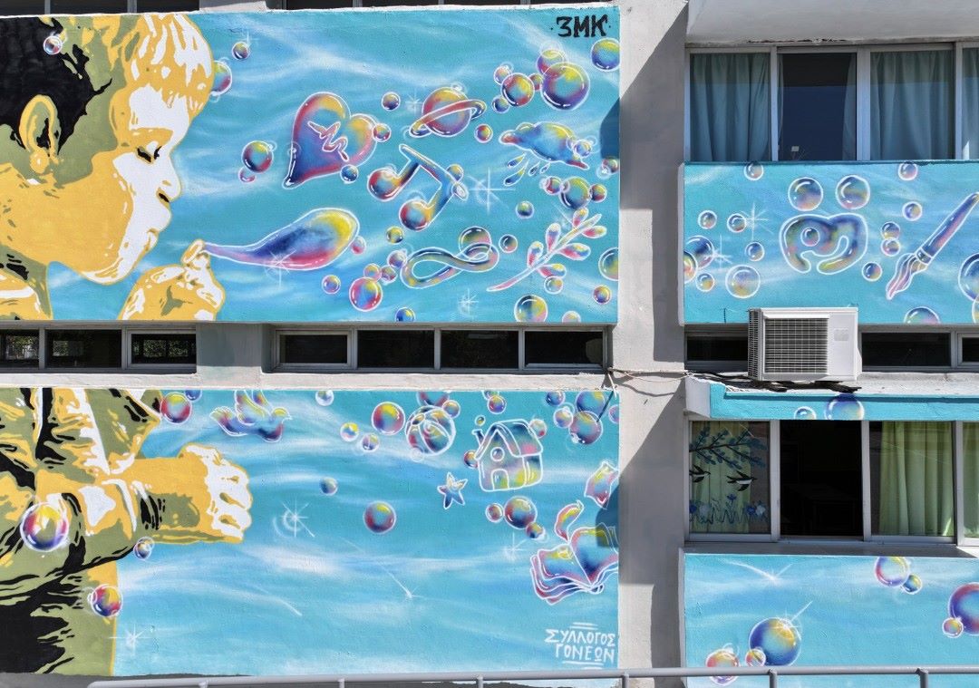 Το θέμα της τοιχογραφίας, που υλοποιήθηκε τον Σεπτέμβριο του 2024, απεικονίζει ένα παιδί που φυσάει φούσκες, ένα από τα πιο ευχάριστα και ξέγνοιαστα παιχνίδια που αγαπούν να παίζουν τα παιδιά σε κάθε ηλικία. Οι φούσκες παίρνουν μορφή και γίνονται διάφορα σύμβολα που αντικατοπτρίζουν τα δικαιώματα των παιδιών. Το δικαίωμα στην οικογένεια, στην ειρήνη και προστασία των παιδιών σε συνθήκες πολέμου, στην ποιοτική εκπαίδευση, στην καλή υγεία και ιατρική φροντίδα, στην ισότητα και μη διάκριση, αλλά και το δικαίωμα στην ψυχαγωγία, στον ελεύθερο χρόνο και στη φιλία αποτελούν μερικά από τα βασικά δικαιώματα της Σύμβασης για τα Δικαιώματα του Παιδιού, που υιοθετήθηκε από τη Γενική Συνέλευση του ΟΗΕ το 1989, και μέσω συμβόλων απεικονίζονται στη συγκεκριμένη τοιχογραφία.