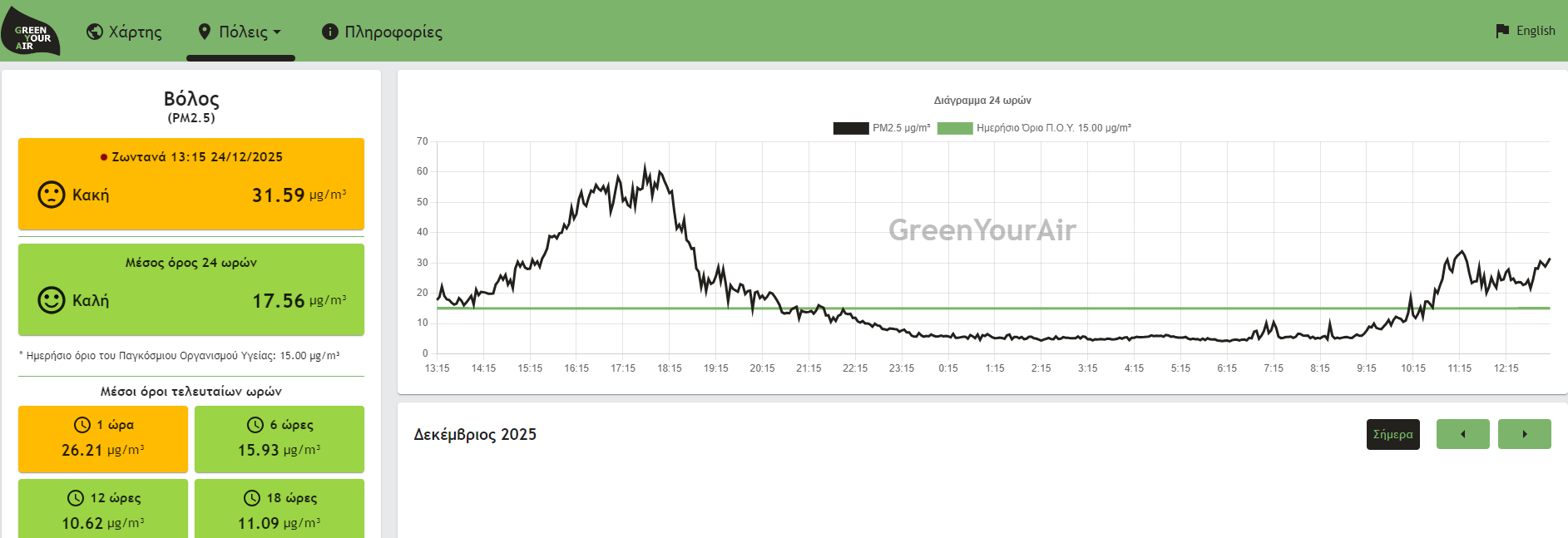 Υπερβάσεις όμως καταγράφηκαν και χθες, σύμφωνα με την πλατφόρμα GreenYourAir και τους μετρητές του Τμήματος Μηχανολόγων Μηχανικών του ΠΘ.