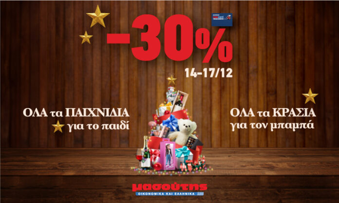 Από αυτήν την Πέμπτη 14/12 έως και την Κυριακή 17/12 ανακαλύψτε ΟΛΑ τα παιχνίδια και κρασιά -30% φθηνότερα με την χρήση της ΜasCard!