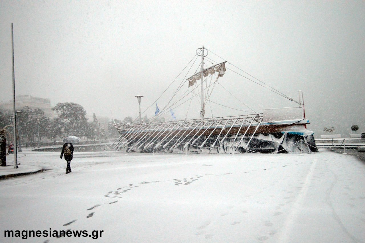 Πανέμορφο το χιονισμένο τοπίο στην παραλία του Βόλου
