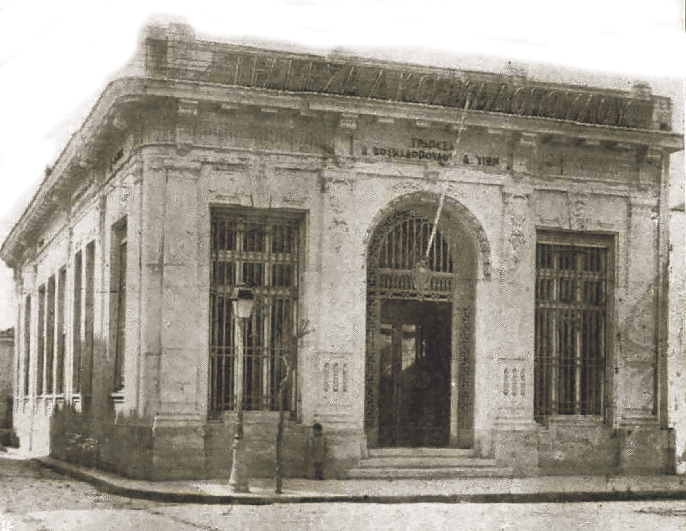 Ο Κοσμαδόπουλος ξεκίνησε στη Δημητριάδος ως αργυραμοιβός και το 1910 κατασκευάστηκε η Τράπεζα Κοσμαδόπουλου, ενώ μετέπειτα το 1932 επήλθε η πτώχευσή της. Επακολούθησε η Αγροτική Τράπεζα και μεταπωλήθηκε στην Τράπεζα Πειραιώς στις ημέρες μας. Στη Δημητριάδος βρισκόταν η Ιονική-Λαϊκή Τράπεζα στην οποία σήμερα έγινε το κτήριο του μάρκετ Γαλαξίας και της Αποκεντρωμένης Περιφέρειας Θεσσαλίας, οδός Δημητριάδος και Παύλου Μελά. Αν προσέξετε σήμερα την πρόσοψη του κτηρίου θα δείτε την ίδια είσοδο με την Ιονικής-Λαϊκής. Μετά το 1970 λειτούργησαν οι Τράπεζες Ιονική Δημητριάδος-Ιωλκού, Τράπεζα Επαγγελματικής Πίστεως Δημητριάδος-Σκενδεράνη και απέναντι Ταχυδρομικό Ταμιευτήριο.