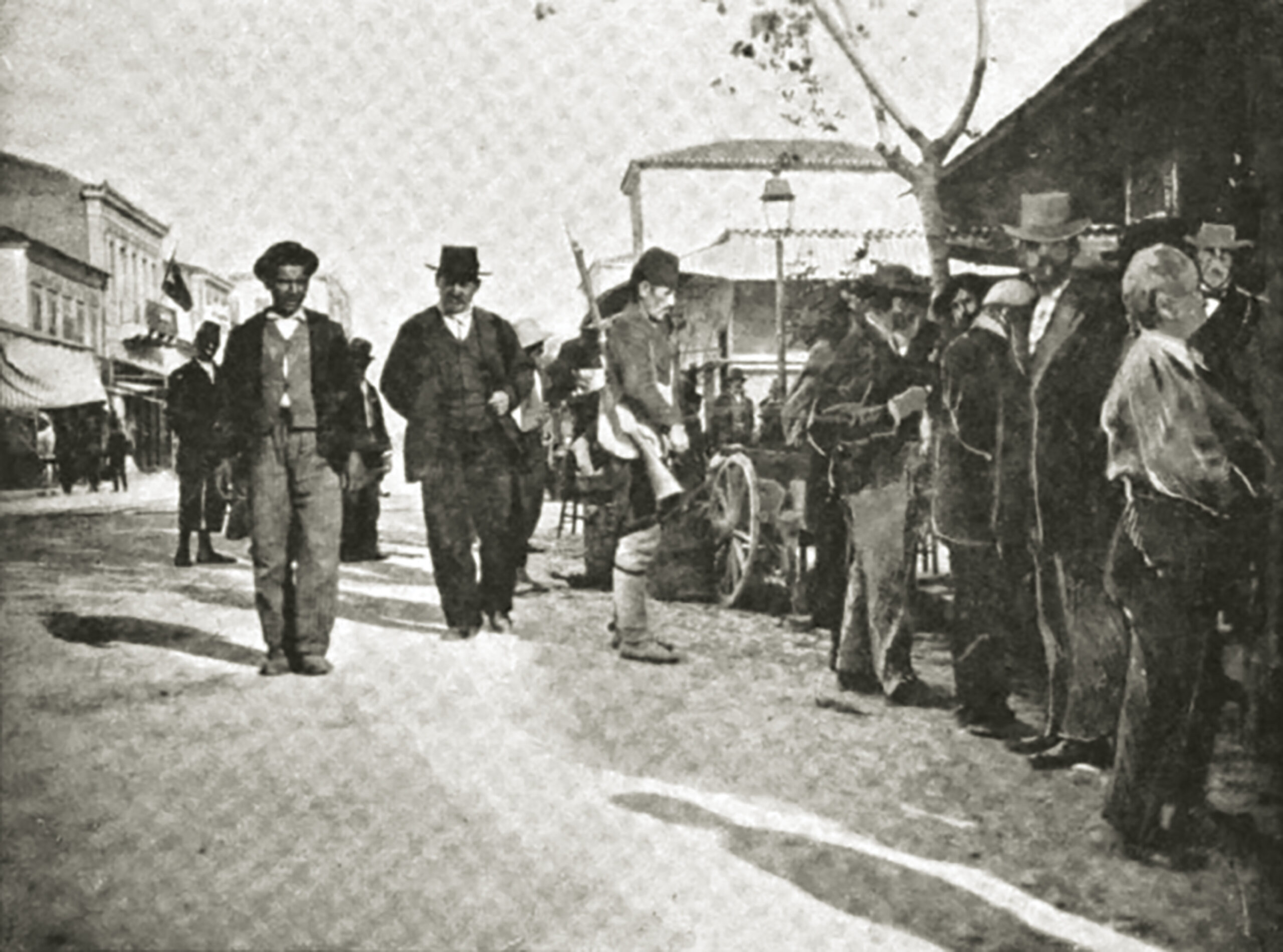 Αι οικίαι, αι περιταινιούσαι την παραλίάν ιδίως, εισί λιθόκτιστοι και κομ-ψοί… Εν τούτοις η νεαρά πόλις εννοεί να χαρή τα καλά της ελευθερίας.