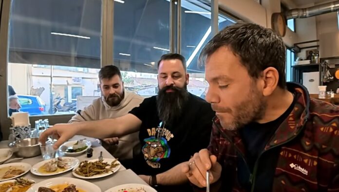 Ο Ευτύχης Μπλέτσας βρέθηκε στον Βόλο για ένα διπλό live. Η αρχή έγινε στην Πόλη των Τσιπουράδων. Ο Ευτύχης συναντήθηκε με τον Τιμολέοντα Διαμαντή και την ομάδα των Tech It Serious, σε ένα από τα πιο χαρακτηριστικά τσιπουράδικα του Βόλου. Στο τσιπουράδικο Καρακατσάνης, ο Τιμολέων είναι ο σεφ. Το live κύλησε με τσίπουρο, μεζέδες και κουβέντα γύρω από το φαγητό και τη γαστρονομική φιλοσοφία του Βόλου.