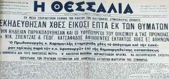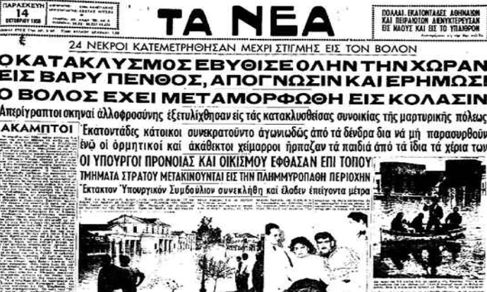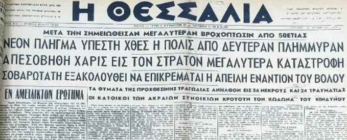 «Ο Βόλος δέχθηκε τη χαριστική του βολή. Αυτές οι τρομακτικές πλημμύρες ήρθαν να ολοκληρώσουν το δράμα του. Ανέκοψαν τον βραδύν ρυθμόν της ανοικοδομήσεως και στα μεγάλα και δυσεπίλυτα προβλήματά του προσετέθησαν νέα και-το χειρότερο-στους νεκρούς των σεισμών προσετέθησαν οι νεκροί της καινούργιας συμφοράς που τον βρήκε.