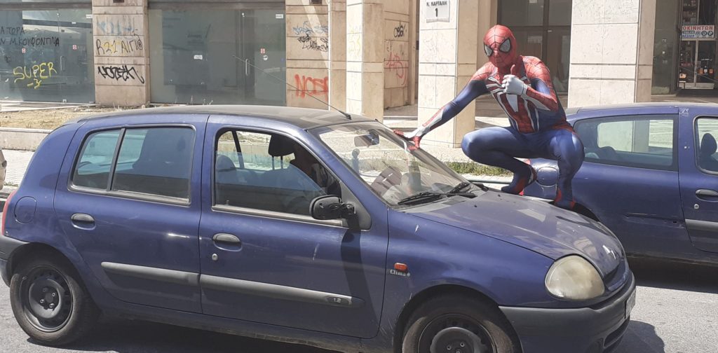 Όσο για την αντίδραση όσων βλέπουν παρέα τον Spiderman και τον Μαύρο Πάνθηρα στους δρόμους του Βόλου, η απάντηση έρχεται από τον Γιώργο Κρανά. “Γίνεται χαμός, μας κοιτούν όλοι, μας δείχνουν, μας μιλούν, κορνάρουν και θέλουν να βγάλουν φωτογραφίες. Φυσικά δεν χαλάμε χατίρι σε κανέναν”.