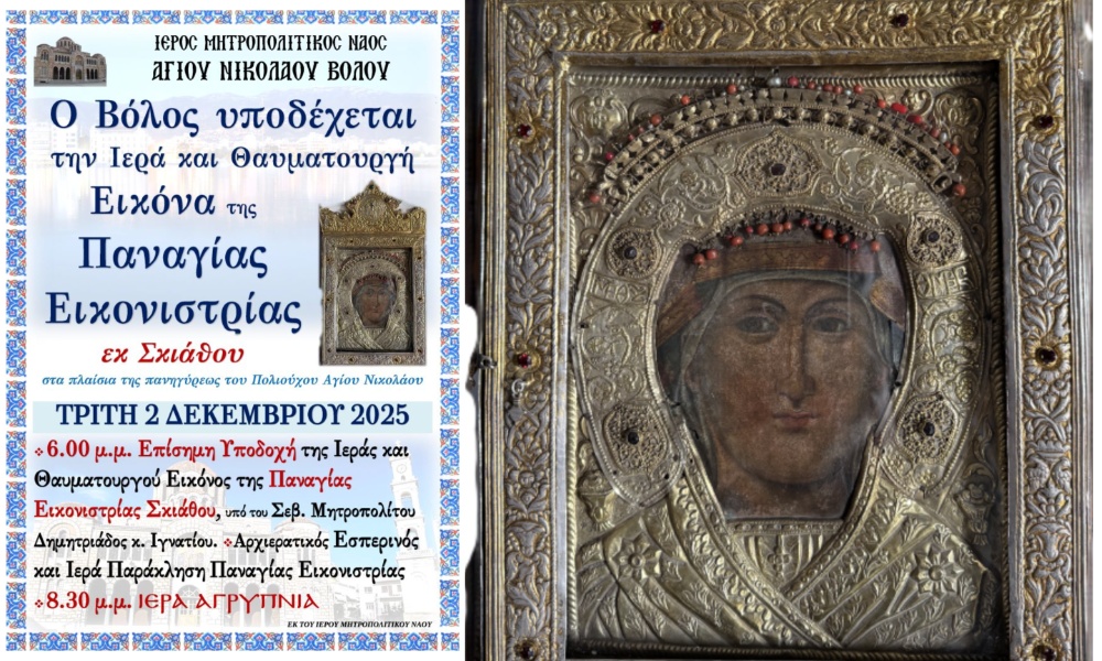 Σπουδαίο γεγονός και εξαιρετική ευλογία για την πόλη του Βόλου συνιστά, όπως σημειώνει σε ανακοίνωσή της η Μητρόπολη Δημητριάδος, η έλευση και ολιγοήμερη παραμονή στον Μητροπολιτικό Ιερό Ναό Αγίου Νικολάου της Ιεράς και Θαυματουργού Εικόνος της Παναγίας Εικονιστρίας, που φυλάσσεται στο νησί της Σκιάθου.