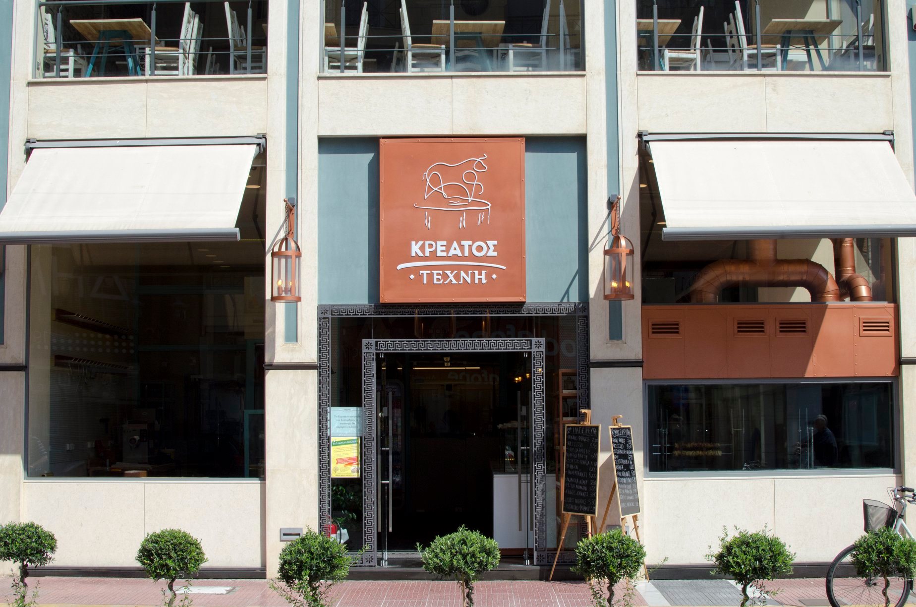 Συνδυάζοντας τη φιλοσοφία του κρεοπωλείου με τη νοστιμιά του ψητοπωλείου, στο «Κρέατος Τέχνη» η ποικιλία κρεάτων, ιδιαίτερων και παραδοσιακών γεύσεων είναι τόσο μεγάλη, που η απόφαση για την τελική επιλογή καθίσταται δύσκολη! Για τους απαιτητικούς των γεύσεων διατίθενται καθημερινά στο κρεοπωλείο που βρίσκεται εντός του χώρου, ποικιλία εκλεκτών κρεάτων όπως το περίφημο μοσχάρι black angus Αργεντινής, μπριζόλες Tomahawk και ντόπια κρέατα, όπως χοιρινό, αρνί, κατσίκι και πρόβειο. Όλα αυτά επί της Δημητριάδος 131.