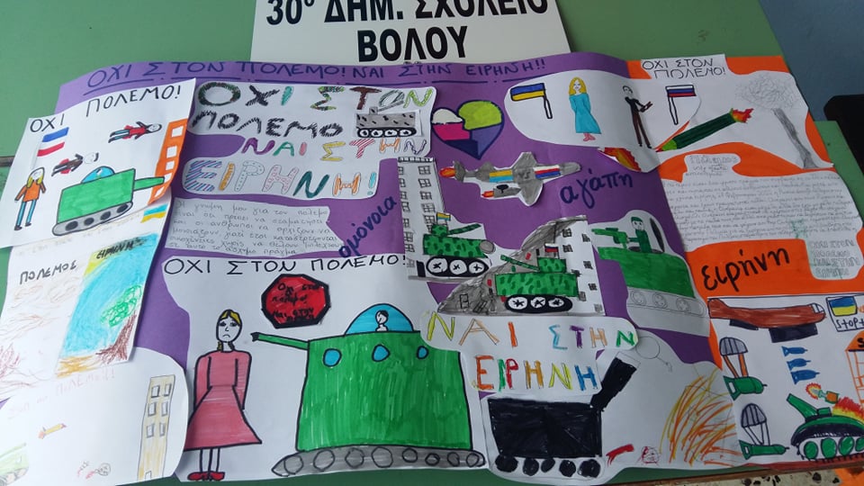 Για το λόγο αυτό τα παιδιά του 30ού Δ. Σχ. Βόλου εξέφρασαν την αντίθεσή τους στον πόλεμο, ως τρόπου επίλυσης κάθε διαφοράς στέλνοντας ηχηρό μήνυμα υπέρ της ειρήνης.