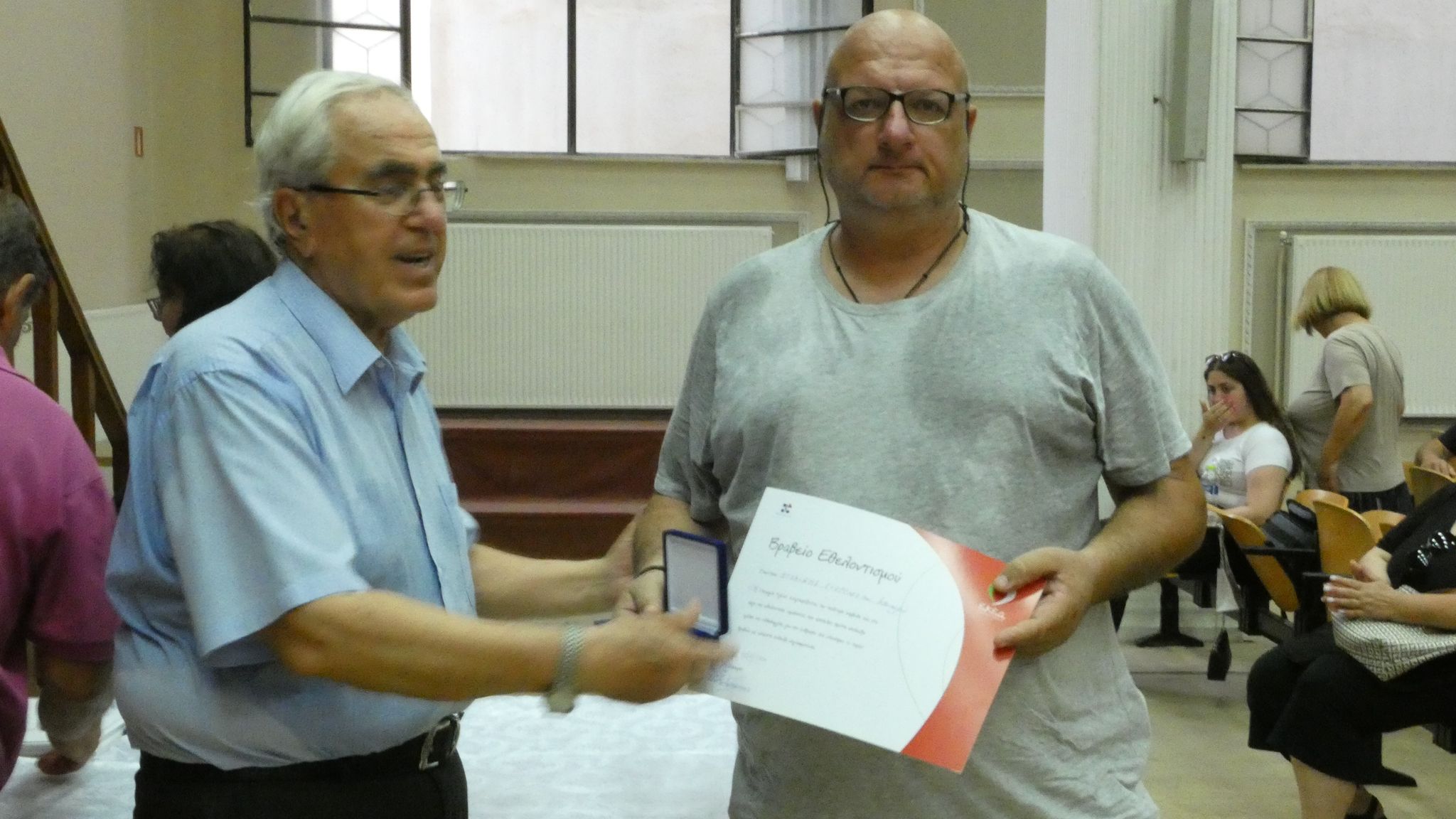 Ο κ. Γιάννης Κυριαζής ήταν μεταξύ των εθελοντών αιμοδοτών που έλαβαν το ασημένιο μετάλλιο. Η χαρά του ήταν μεγάλη καθώς εδώ και 25 χρόνια προσφέρει στον συνάνθρωπο. “Ξεκίνησα την αιμοδοσία για λόγους ευαισθησίας, να δωρίσω αίμα σε ανθρώπους που το χρειάζονται καθημερινά και το συνεχίζω μέχρι και σήμερα”, σημείωσε και ανέφερε ότι τα συναισθήματα που αισθάνεται όταν αιμοδοτεί είναι πολλά, καθώς προσφέρεται η ζωή σε όσους έχουν ανάγκη, σε όσους ίσως έχουν κάποια σοβαρά ατυχήματα ή άλλες ασθένειες.