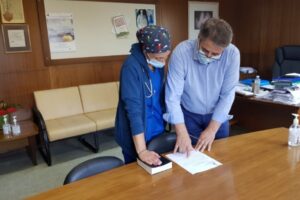 Ορκίστηκε σήμερα ενώπιον του Διοικητή του Γ.Ν.Βόλου «Αχιλλοπούλειο» Ιωάννη Ντόκου , η ιατρός Πούλου Γαρυφαλλιά,Επιμελήτρια Α΄Αναισθησιολογίας. Η διαδικασία στελέχωσης του Νοσοκομείου συνεχίζεται και με άλλους διορισμούς διαφόρων ειδικοτήτων.
