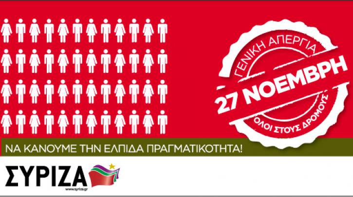 Κάλεσμα του ΣΥΡΙΖΑ για συμμετοχή στην απεργία και τη συγκέντρωση της...