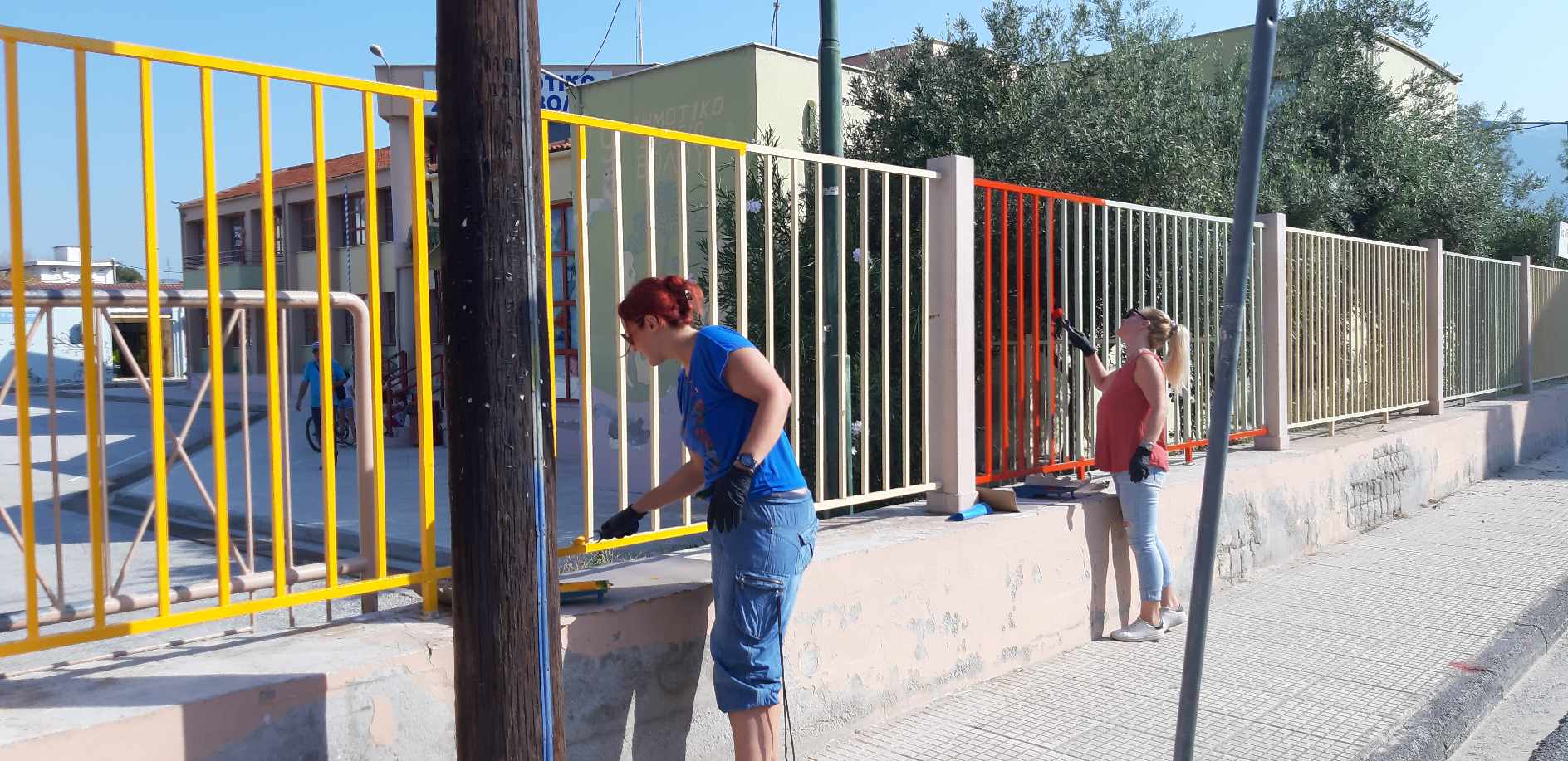 Σήμερα, έξω από το 9ο Δημοτικό Σχολείο που εδρεύει στο Παλιό Λιμεναρχείο γονείς, μέλη του Συλλόγου Γονέων με μπογιές έβαφαν τα κάγκελα θέλοντας να δώσουν λίγο χρώμα στο σχολείο και να δώσουν χαρά στα παιδιά τους.