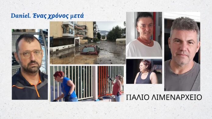 5 Σεπτεμβρίου 2024. Ένας χρόνος μετά τον Daniel. Περπατώντας στους δρόμους του Παλιού Λιμεναρχείου, μια συνοικία που δέχτηκε ισχυρό πλήγμα, με τους δρόμους να γεμίζουν λασπόνερα, τους κατοίκους να ανεβαίνουν έντρομοι σε ταράτσες και ορόφους για να σωθούν και το νερό να τρέχει ποτάμι στους δρόμους, βλέπει κανείς ότι με τα χέρια και το μεράκι των κατοίκων, η περιοχή έχει βρει ξανά τον δρόμο της. Δεν είναι όμως όπως παλιά. Πολλοί ήταν οι κάτοικοι που έφυγαν από την περιοχή, μιας και τα σπίτια τους πλημμύρισαν, οι τοίχοι σε πολλά σπίτια είναι ακόμη ξεφλουδισμένοι από το νερό, συνεργεία προσπαθούν να επαναφέρουν και να κάνουν εργασίες σε σπίτια που πλημμύρισαν, κάτοικοι και επαγγελματίες περιμένουν ακόμη να …αποζημιωθούν…