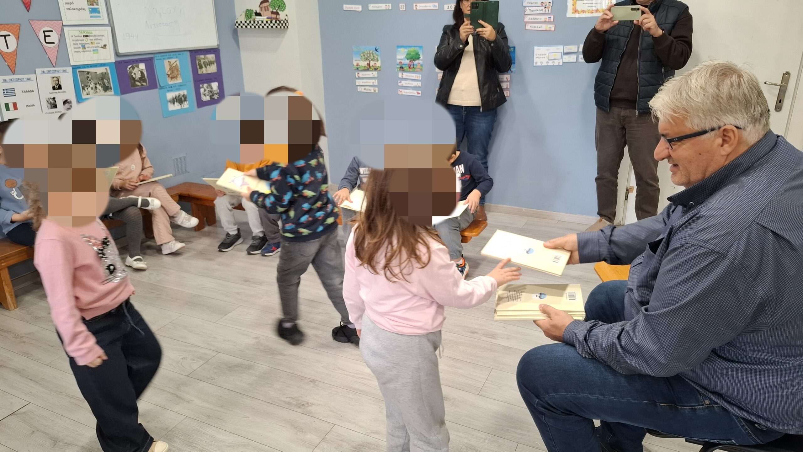 Με αφορμή τη παραπάνω πρωτοβουλία, την Τετάρτη 22 Οκτωβρίου, ο συγγραφέας κ. Ιωάννης Ευσταθίου επισκέφθηκε το Νηπιαγωγείο της Ιεράς Μητροπόλεως Δημητριάδος και αφηγήθηκε το τελευταίο του κατά σειρά παραμύθι του με τίτλο η «Μαγεμένη Φώκια». Στο τέλος της επίσκεψής του δώρισε στους μικρούς μαθητές το εν λόγω παραμύθι και τον ευχαρίστησαν με ενθουσιασμό και με ένα μεγάλο χαμόγελο.