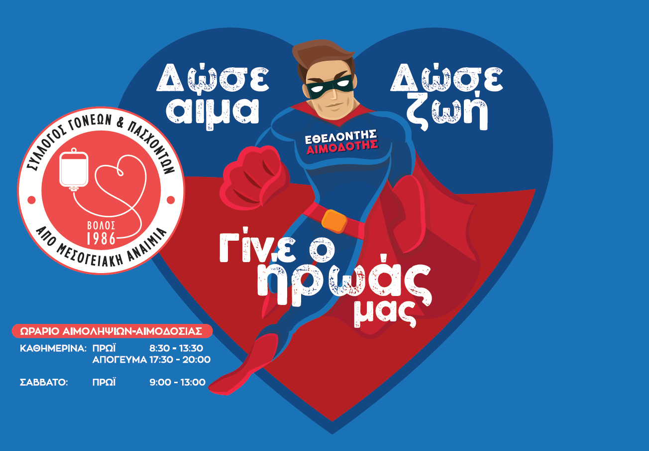 Έκκληση για προσφορά αίματος απευθύνει ο Σύλλογος Μεσογειακής Αναιμίας Βόλου καθώς όπως επισημαίνει σε σχετική ανακοίνωση κατά την περίοδο των εορτών και με την έλευση της μετάλλαξης Omicron του νέου κορωνοϊού Covid-19, μειώθηκε δραματικά η ποσότητα του προσφερόμενου αίματος μέσω της εθελοντικής αιμοδοσίας. Οι 100 περίπου πάσχοντες από Θαλασσαιμία (Μεσογειακή Αναιμία και Δρεπανοκυτταρική Νόσο) που μεταγγίζονται κάθε 15 ημέρες με 2 φιάλες αίματος στο Γ.Ν.Βόλου, τονίζεται ότι περιμένουν αυτό το δώρο ζωής από τους συστηματικούς Εθελοντές Αιμοδότες και όποιον άλλο συμπολίτη μας είναι υγιής και μπορεί να αιμοδοτήσει.