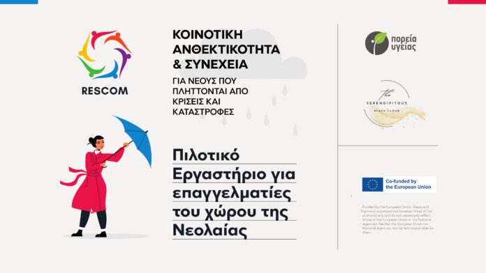 Πιλοτικό εργαστήριο για επαγγελματίες του χώρου της νεολαίας, θα πραγματοποιηθεί στις 25/11 και 2/12 στον Βόλο. Το Εργαστήριο RESCOM Κοινοτική Ανθεκτικότητα και Συνέχεια, με έμφαση στους Νέους που Πλήττονται από Κρίσεις και Καταστροφές, απευθύνεται σε ψυχολόγους, κοινωνικούς λειτουργούς, εκπαιδευτικούς, και άλλους επαγγελματίες ή εθελοντές που υποστηρίζουν ή μπορεί να υποστηρίξουν νέους σε κρίση. Η συμμετοχή στο εργαστήριο είναι δωρεάν, αλλά περιορισμού στις συμμετοχές όσοι ενδιαφέρονται θα πρέπει να εκδηλώσουν το ενδιαφέρον τους στο σύνδεσμο: https://forms.gle/u5qgTMQDhtkjnHpU6