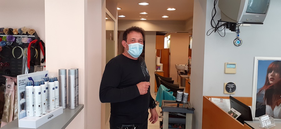 Με χαμόγελο, θετική διάθεση και αισιοδοξία περίμενε σήμερα ο κ. Παντελής Γιαννόπουλος, ιδιοκτήτης κομμωτηρίου στην οδό Αντωνοπούλου τις πελάτισσές του μετά από πολλές ημέρες καραντίνας.