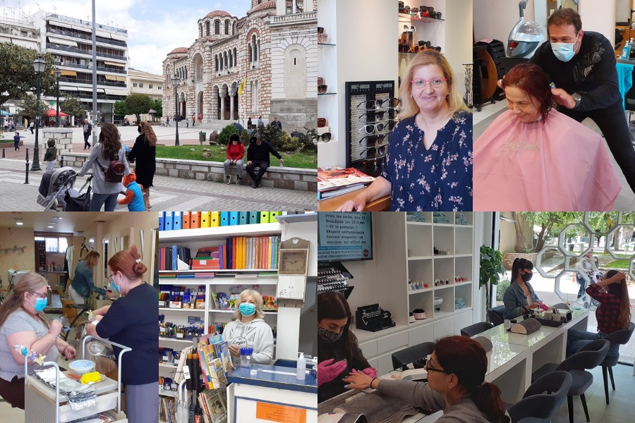 Από κει και έπειτα το μεγαλύτερο φόρτο εργασίας το είχαν τα κομμωτήρια και τα κουρεία. Ουρές δεν υπήρχαν, καθώς οι ιδιοκτήτες είχαν φροντίσει να ενημερώσουν τους πελάτες τους για τα προβλεπόμενα ραντεβού κι έτσι οι ενδιαφερόμενοι προσέρχονταν στην ώρα τους για το κούρεμα ή το βάψιμο των μαλλιών για τις γυναίκες μετά την καραντίνα.