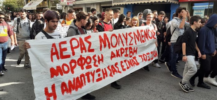 Μαθητές και φοιτητές φώναξαν συνθήματα για την αέρια ρύπανση στο Βόλο, ενώ μεταξύ των αιτημάτων τους είναι και η παύση της καύσης σκουπιδιών από την ΑΓΕΤ.