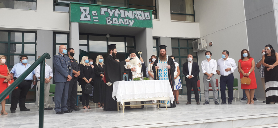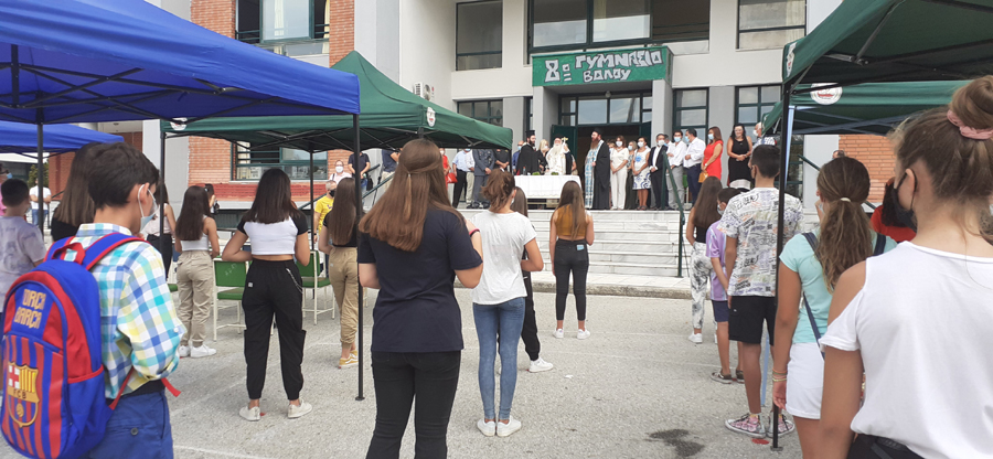 Τους επίσημους Αγιασμούς τέλεσε ο Μητροπολίτης Δημητριάδος Ιγνάτιος, ο οποίος όταν μίλησε στα παιδιά φόρεσε προστατευτική μάσκα, τονίζοντας τους τη σπουδαιότητά της. Επεσήμανε πως “είναι μία ξεχωριστή χρονιά, προσπαθήσαμε να πείσουμε να είναι όλα τα παιδιά στα σχολεία και χαίρομαι. Διαπιστώνω τελικά ότι τα παιδιά θα είναι στα σχολεία με όλα τα μέτρα που πρέπει να λαμβάνονται για την υγεία τους, για την υγεία των γονιών τους, των παππούδων και γιαγιάδων τους. Όλοι μαζί θα προχωρήσουμε αυτή τη χρονιά. Δεν θα είναι εύκολη, ιδίως για τους εκπαιδευτικούς, αλλά θέλω να ξέρουν ότι θα είμαστε κοντά τους με τις ευχές και με ό,τι άλλο μπορούμε να προσφέρουμε. Ήδη έχουμε συντονίσει τις προσπάθειές μας και πιστεύω ότι δεν θα μείνει κανένα παιδί χωρίς πρωινό, χωρίς μεσημεριανό φαγητό. Λαμβάνουμε όλα τα μέτρα για να συνεχίσουμε την αλληλεγγύη και τη συμπαράσταση”.
