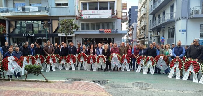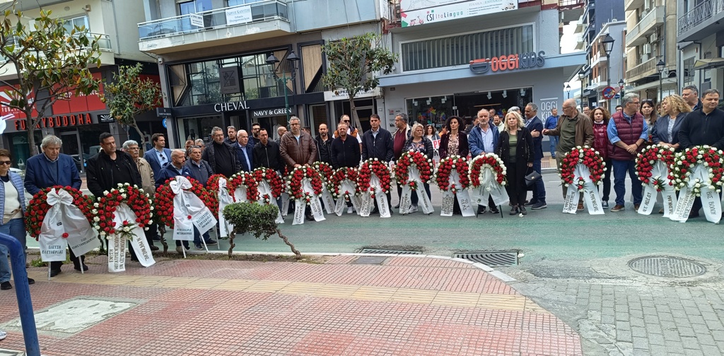 Εργατοϋπαλληλικό Κέντρο Βόλου, Νομαρχιακό Τμήμα Μαγνησίας της ΑΔΕΔΥ και πρωτοβάθμια σωματεία εργαζομένων έκαναν συγκέντρωση και κατέθεσαν στεφάνια στο σημείο που βρίσκεται το μνημείο προς τιμήν του εργάτη Ν. Μπουμπατζή που δολοφονήθηκε στις μεγάλες απεργίες του 1936, στη συμβολή των οδών Δημητριάδος και Αγίου Νικολάου, στο κτίριο των ΕΛΤΑ.