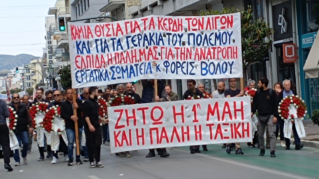 Ο Θανάσης Παπαδημόπουλος πρόεδρος του Εργατικού Κέντρου Βόλου, τόνισε σε δήλωσή του ότι μετά από 139 χρόνια εξέγερσης, οι εργαζόμενοι βρίσκονται στους δρόμους, οι συλλογικές συμβάσεις βάλλονται, υπάρχει ένας πρωθυπουργός, ο οποίος νομοθετεί και αυθαιρετεί, δεν επιτρέπονται συλλογικές διαπραγματεύσεις.