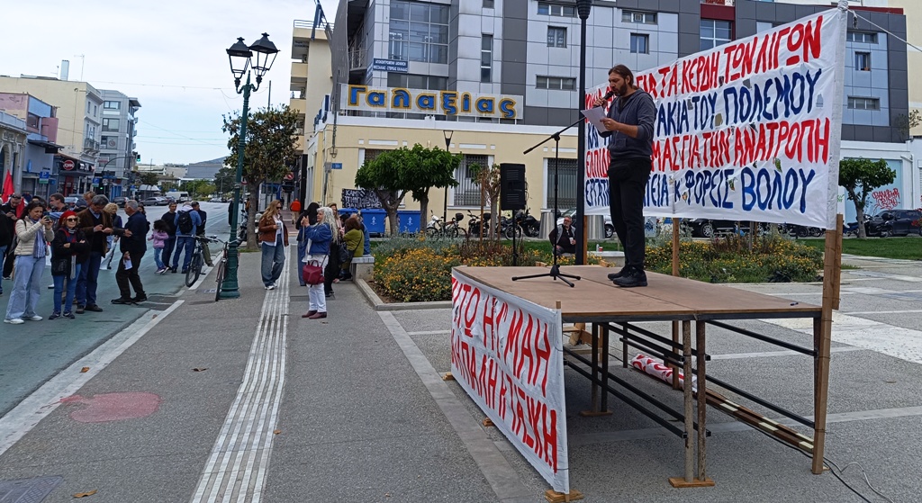 Στη συγκέντρωση του ΠΑΜΕ μίλησε ο Παν. Τσιτσιρίκης, πρόεδρος των Εμποροϋπαλλήλων Βόλου και μέλος της Διοίκησης του ΕΚΒ, ανέφερε ότι το σύνθημα των εργατών του Σικάγο παλεύουμε για το οκτάωρο και μια ζωή που θα μπορούμε να τα βγάζουμε πέρα, είναι επίκαιρο όσο ποτέ, σε μια εποχή που ζούμε για να δουλεύουμε, σε συνθήκες που εμπορικοί και οι ιμπεριαλιστικοί πόλεμοι αυξάνονται και να χρηματοδοτηθούν μπαίνει κόφτες στις ανάγκες μας για παιδεία, υγεία και μέτρα προστασίας στους χώρους δουλειάς.