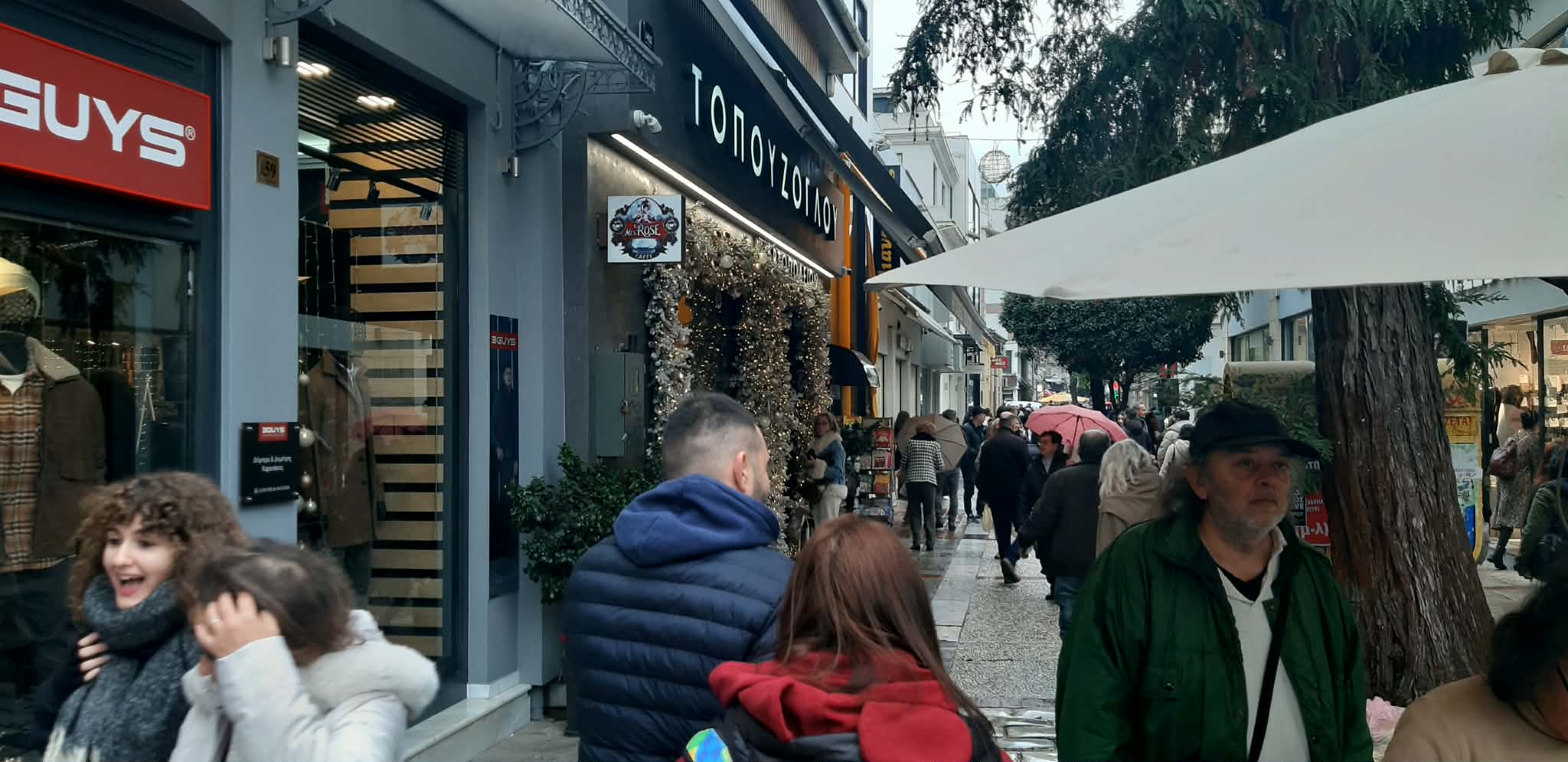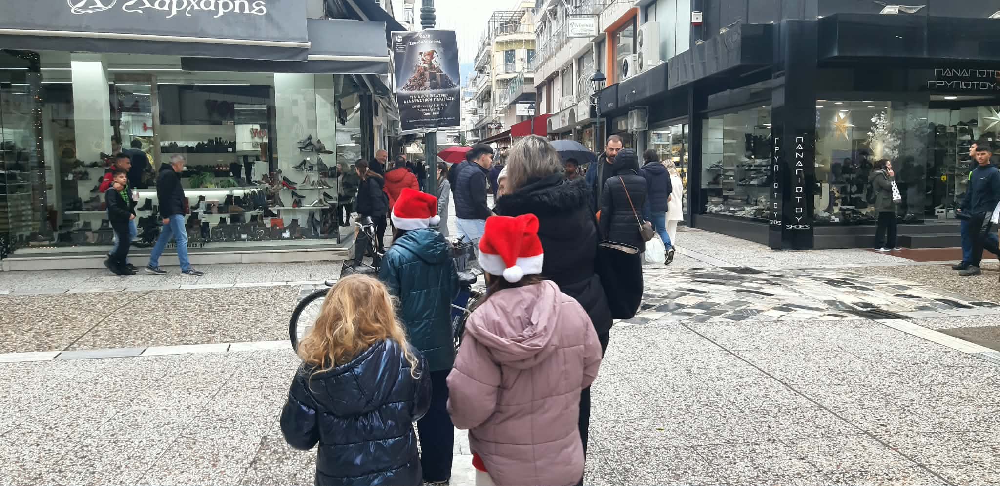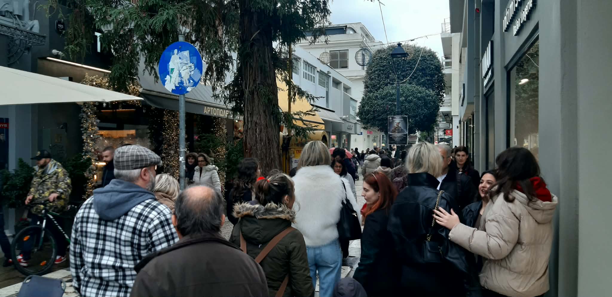 Πολλά από τα παιδάκια, για να μπουν στο πνεύμα των εορτών φορούν κόκκινα σκουφάκια σαν άλλοι Αγιο Βασίληδες, με την αγορά να “ζεσταίνεται” επιτέλους. Μετά τα ψώνια, πολλοί είναι αυτοί που παίρνουν μία ανάσα στις καφετέριες του κέντρου.
