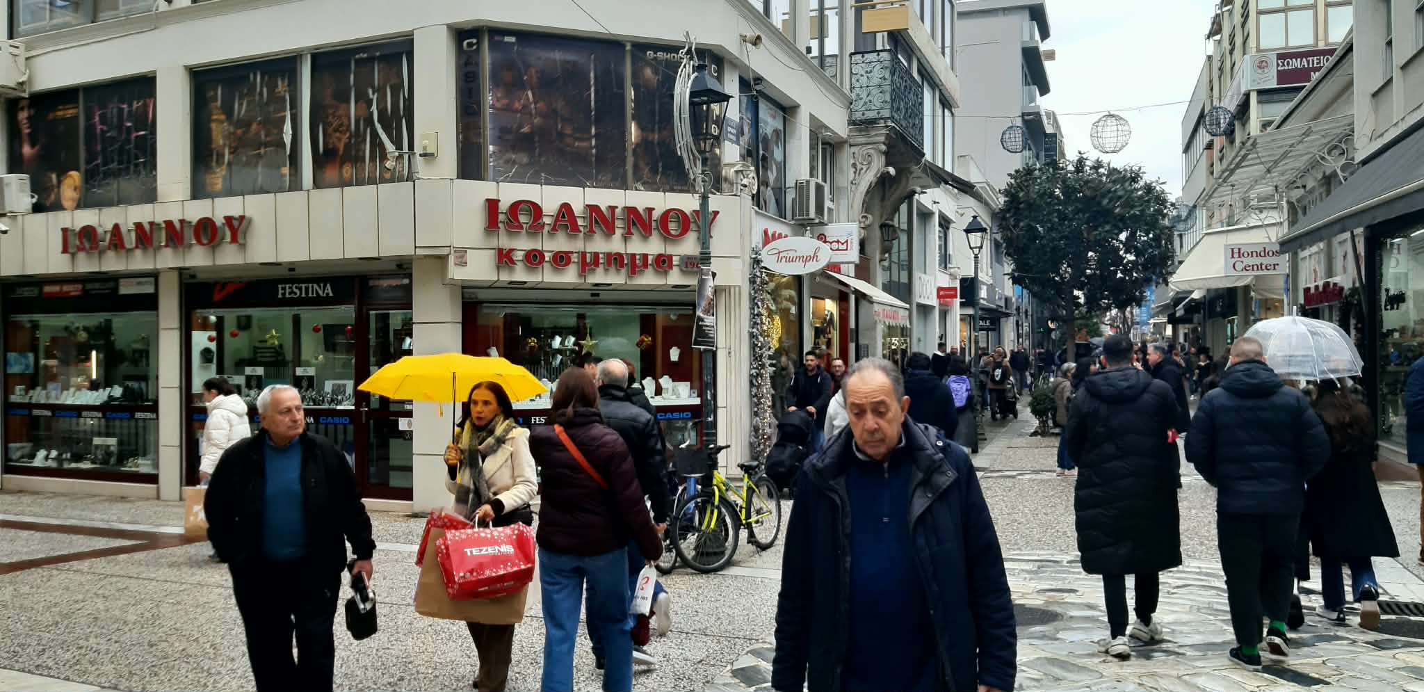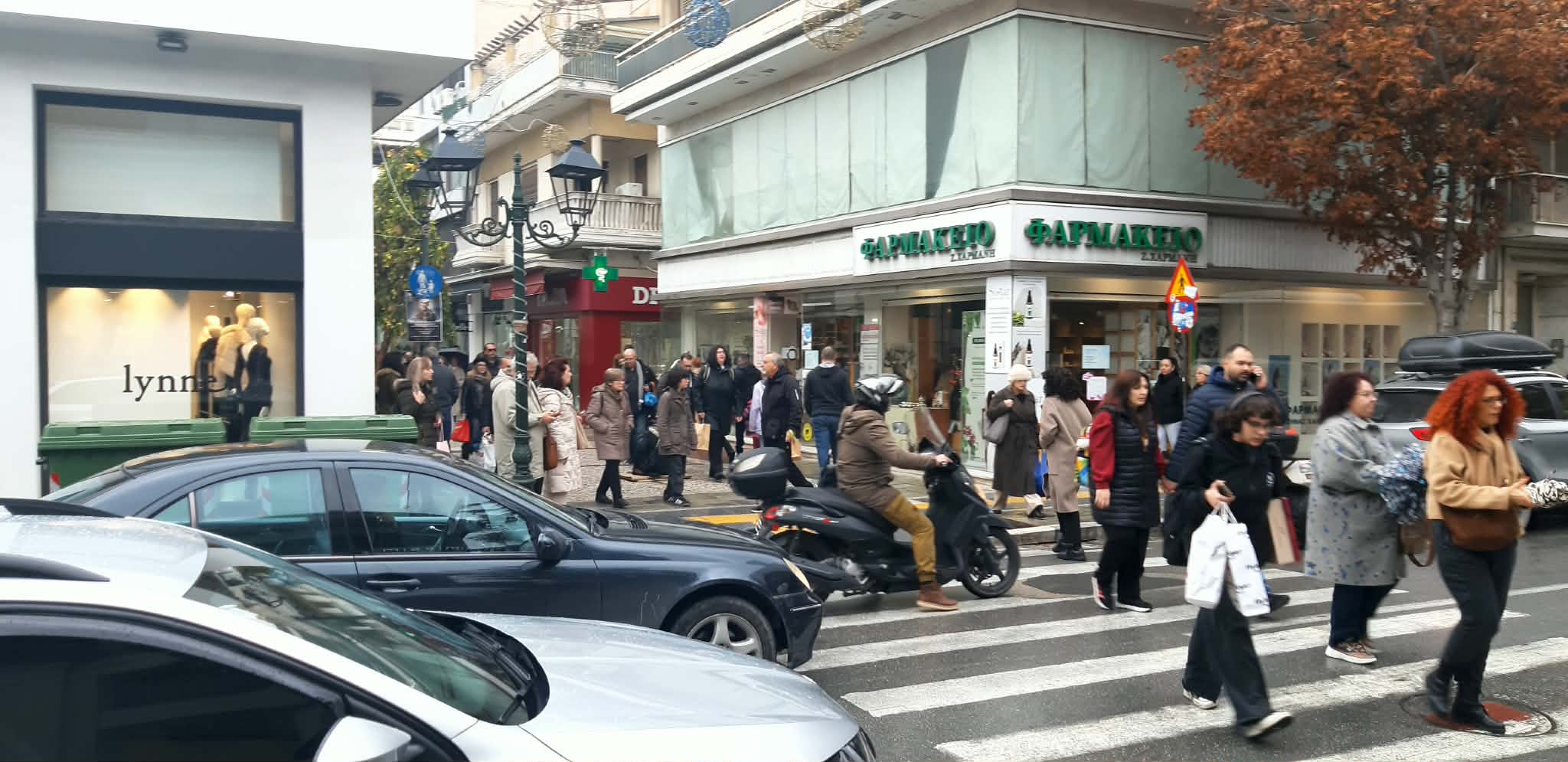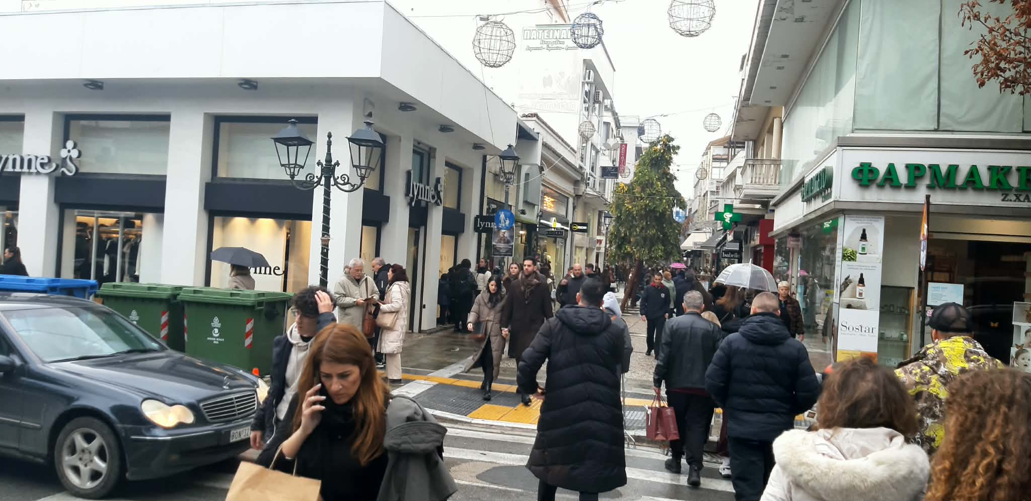 Πολλά από τα παιδάκια, για να μπουν στο πνεύμα των εορτών φορούν κόκκινα σκουφάκια σαν άλλοι Αγιο Βασίληδες, με την αγορά να “ζεσταίνεται” επιτέλους. Μετά τα ψώνια, πολλοί είναι αυτοί που παίρνουν μία ανάσα στις καφετέριες του κέντρου.