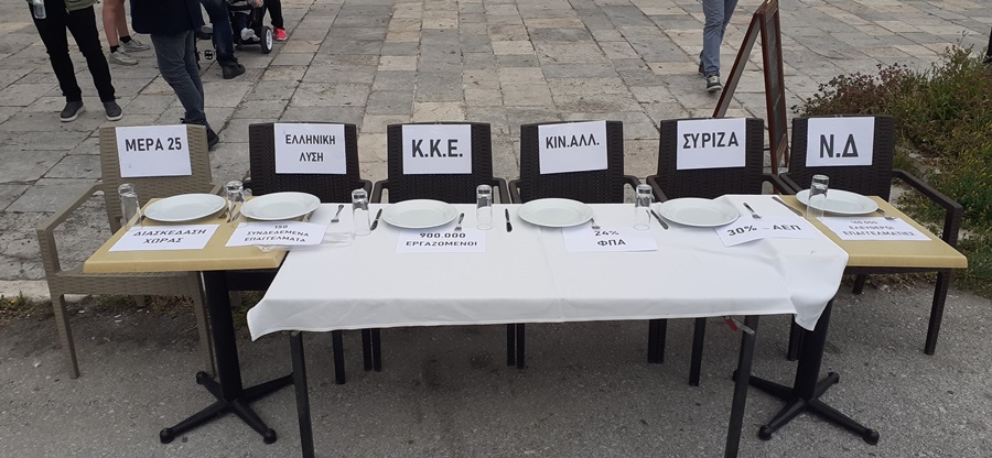 Με άδειες καρέκλες στην παραλία του Βόλου διαμαρτυρήθηκαν καταστηματάρχες και εργαζόμενοι του κλάδου της εστίασης για την κατάσταση που επικρατεί στον κλάδο, με το παρατεταμένο lockdown και ταυτόχρονα χωρίς ουσιαστικά, όπως επεσήμαναν μέτρα στήριξης.