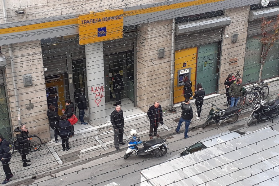Χαρακτηριστικό είναι πως πολύ νωρίς το πρωί, οι ουρές έφτασαν μέχρι στο τέλος των οικοδομικών τετραγώνων, με πάνω από 50-60 άτομα να περιμένουν τόσο για το ΑΤΜ όσο και για να εισέλθουν στο εσωτερικό των καταστημάτων.