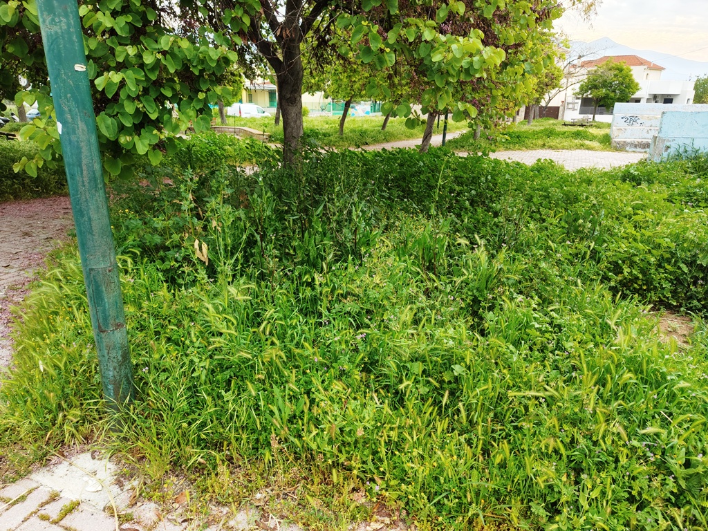 Περίοικοι διαμαρτύρονται για την εικόνα αυτή που αντικρίζουν καθημερινά, σε έναν χώρο όπου παίζουν παιδιά, με κίνδυνο να υπάρχουν ακόμη και φίδια κάτω από τα ψηλά χόρτα, που θυμίζουν βλάστηση ζούγκλας.