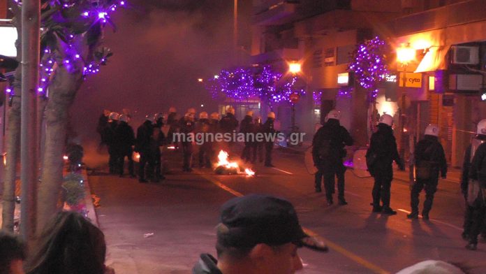 Στο ίδιο έργο θεατές βρέθηκαν απόψε για άλλη μια χρονιά οι Βολιώτες ανήμερα του Αγ. Νικολάου και επέτειο της δολοφονίας του Αλέξανδρου Γρηγορόπουλου, καθώς μπορεί η μαζική πορεία να ξεκίνησε ειρηνικά, είχε όμως την ίδια κατάληξη με προηγούμενα χρόνια, καθώς ομάδες νεαρών με κουκούλες «οχυρωμένοι» στο κτίριο Παπαστράτου του Πανεπιστημίου έπαιζαν ανταρτοπόλεμο με ισχυρές δυνάμεις της Αστυνομίας, στις οποίες πετούσαν πέτρες και πολλές βόμβες μολότοφ, για να δεχτούν χειροβομβίδες κρότου λάμψης και μικρή ποσότητα χημικών. Στη διάρκεια των επεισοδίων έγιναν τέσσερις προσαγωγές νεαρών, μεταξύ των οποίων και ενός ανηλίκου.
