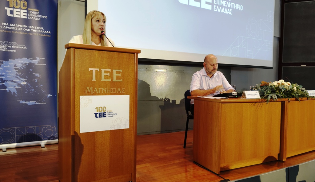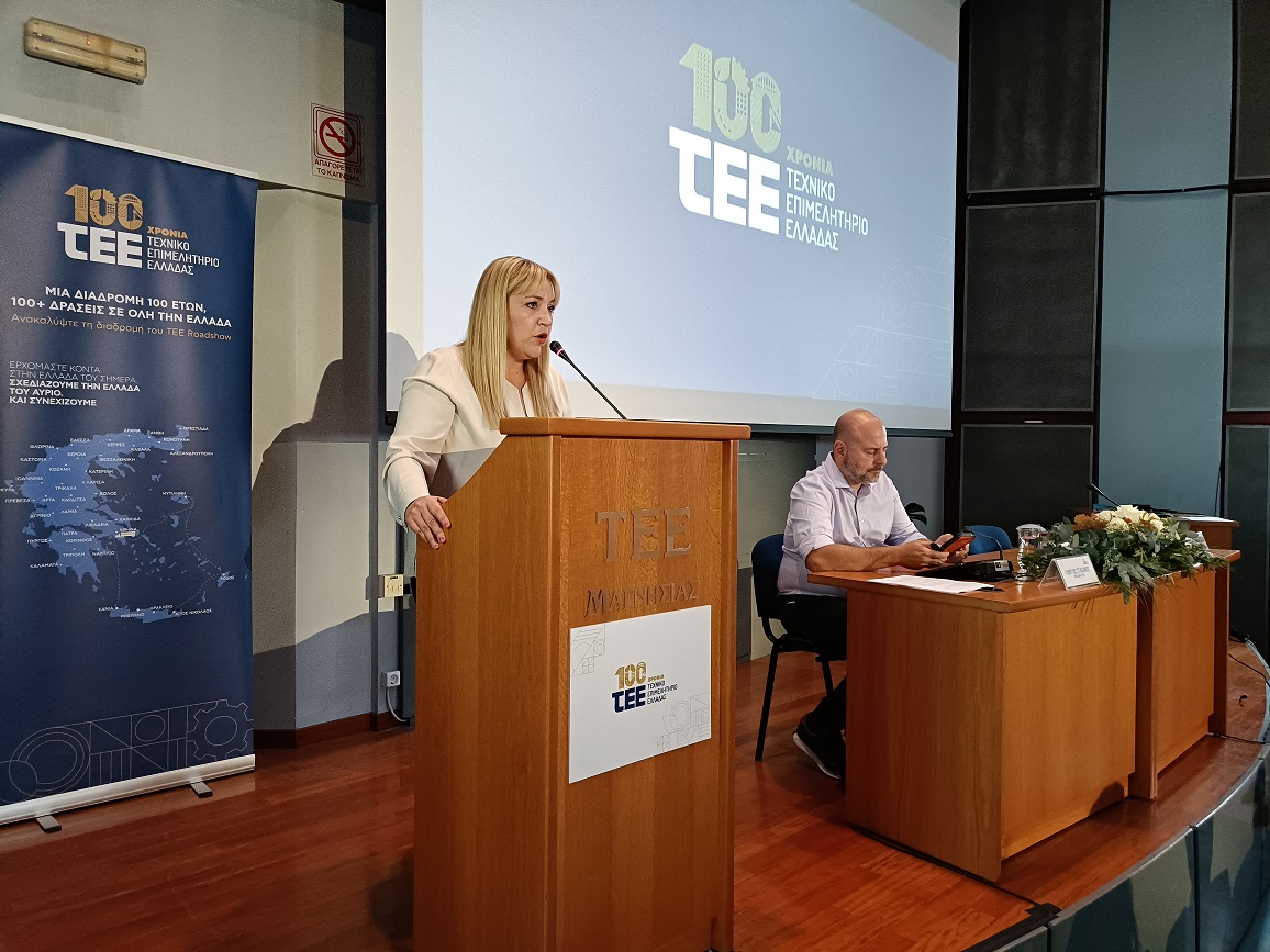 Η πρόεδρος του ΤΕΕ Μαγνησίας Νάνσυ Καπούλα τόνισε ότι το Τεχνικό Επιμελητήριο γιορτάζει τα 100 χρόνια του σε μια πορεία προσφοράς, επιστημοσύνης, σε μια πορεία που μένει ανοιχτή στην κοινωνία, με τους συναδέλφους πάντα στην διάθεση όλων αυτών των θεμάτων που αφορούν την ανάπτυξη, την πρόοδο την ευημερία.