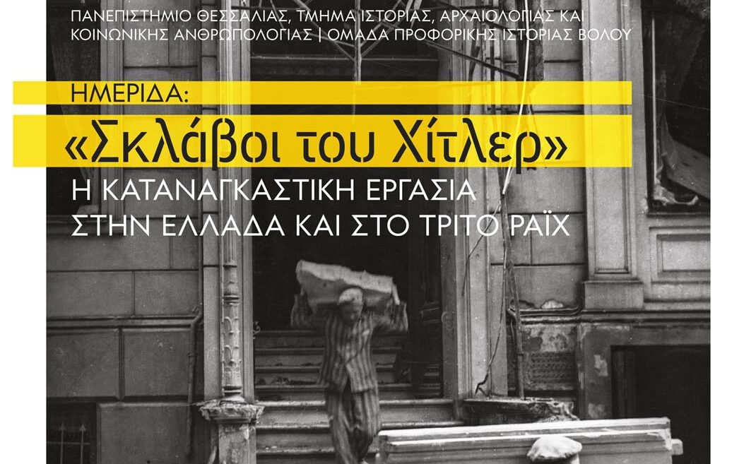 «Σκλάβοι του Χίτλερ: Η καταναγκαστική εργασία στην Ελλάδα και στο Τρίτο Ράιχ» τιτλοφορείται η ημερίδα, που θα πραγματοποιηθεί αύριο Τετάρτη 10 Δεκεμβρίου στις 5 το απόγευμα στο κτήριο Παπαστράτος του Πανεπιστημίου Θεσσαλίας και ειδικότερα στο αμφιθέατρο Κορδάτος.