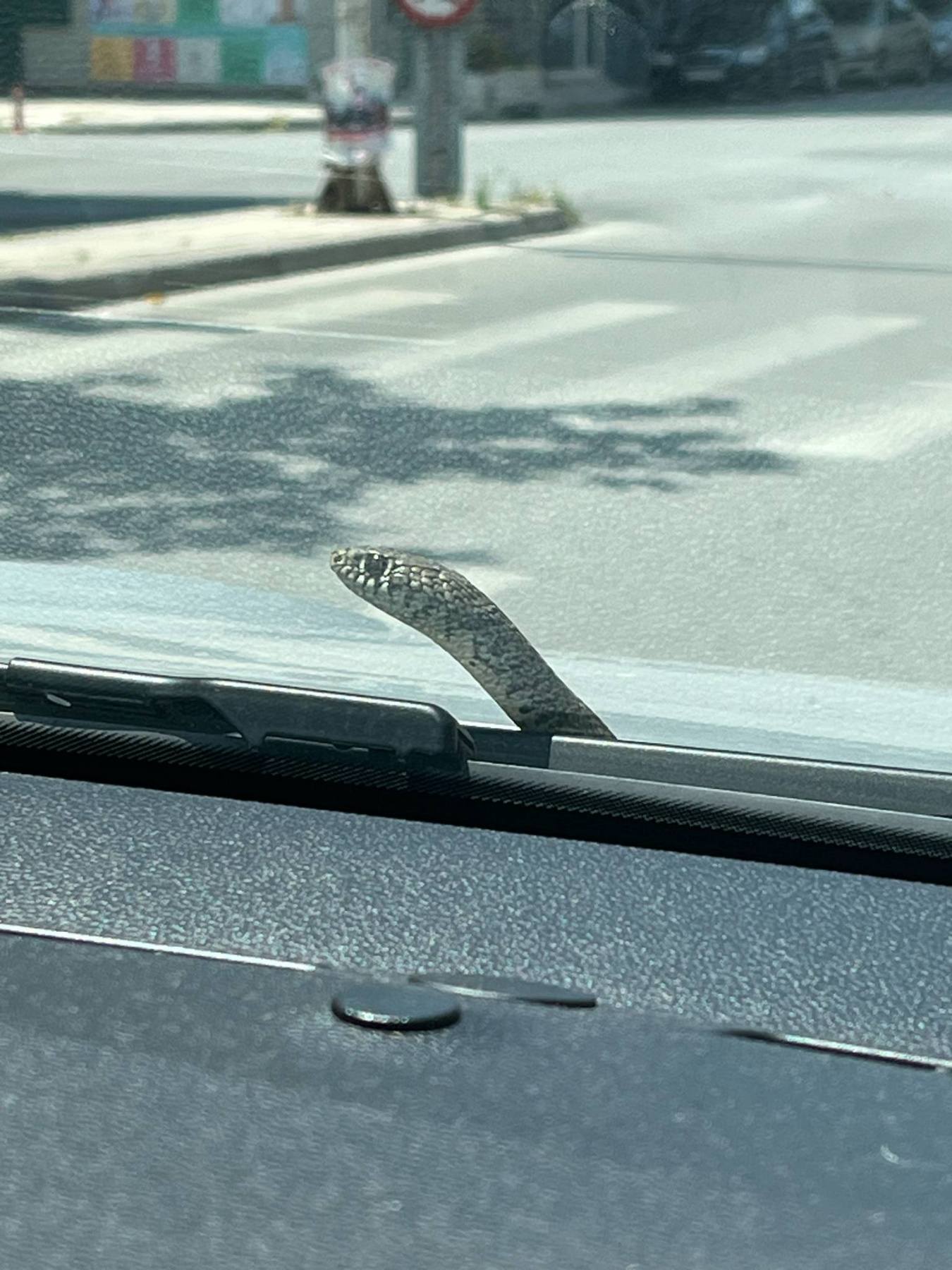 Τρομακτικές στιγμές έζησε μια οδηγός στον Βόλο, όταν φίδι μπήκε στην μηχανή του αυτοκινήτου της και…ξεπρόβαλε στο παρμπρίζ την ώρα που οδηγούσε στην οδό Αναλήψεως.