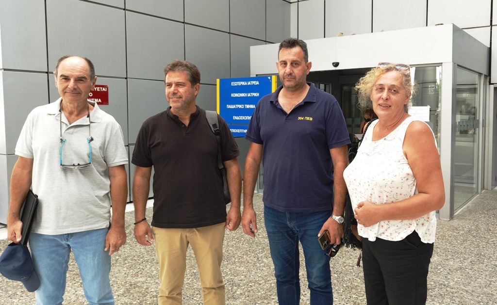 Το κλιμάκιο αποτελούσαν ο πρόεδρος Φίλιππος Κωνσταντινίδης, ο αντιπρόεδρος Γιώργος Φωτόπουλος, ο γραμματέας Κώστας Πολύζος και το μέλος Φούλη Τσιώμου, οι οποίοι συναντήθηκαν με τον Σύλλογο Εργαζομένων στο Νοσοκομείο και με τον διοικητή του νοσηλευτικού Ιδρύματος Γιάννη Ντόκο.