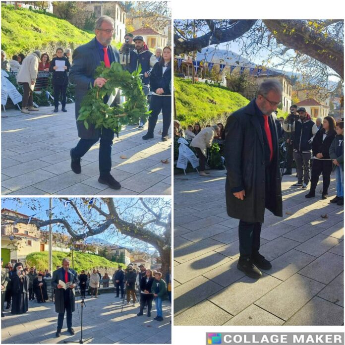 Η κατάθεση στεφάνου πραγματοποιήθηκε σε κλίμα σεβασμού και σιωπής, ως ελάχιστος φόρος τιμής στα αθώα θύματα και ως υπενθύμιση του ιστορικού χρέους για διατήρηση της μνήμης. Το τμήμα εκπροσώπησε ο Νίκος Βαραλής, διευθυντής της «Ορθόδοξης Μαρτυρίας». Στο τέλος της τελετής, ο ίδιος, κατόπιν προσκλήσεως του συλλόγου, απήγγειλε το ποίημα «Τύμβος» του δημοσιογράφου και ποιητή Γιάννη Φάτση, ο οποίος δεν βρίσκεται πλέον στη ζωή. Τα μέλη της AHEPA HJ13 τόνισαν ότι η μνήμη δεν είναι τυπική τελετή, αλλά πράξη ευθύνης απέναντι στην ιστορία και τις επόμενες γενιές.
