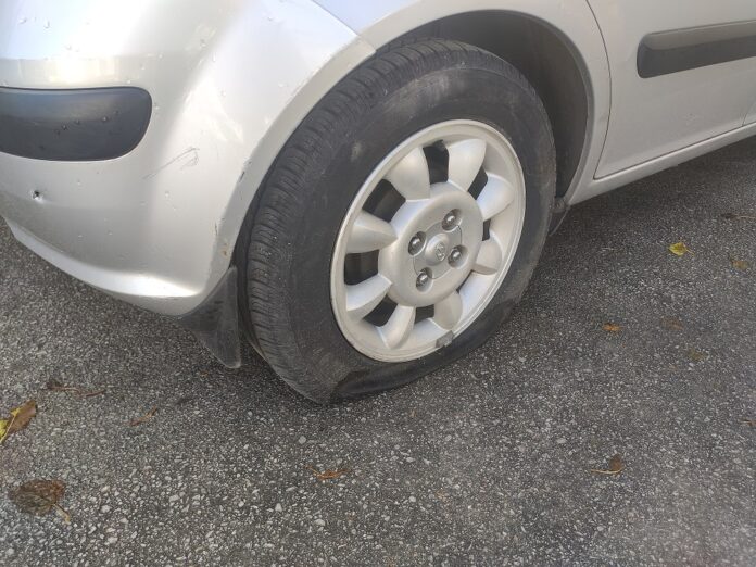 Μια δυσάρεστη έκπληξη περίμενε χθες το πρωί 36 συμπολίτες που όταν πήγαν να πάρουν τα αυτοκίνητά τους για να πάνε στους δουλειές τους, διαπίστωσαν ότι τα δύο λάστιχα (εμπρός και πίσω) της εξωτερικής πλευράς προς το δρόμο, ήταν σκισμένα με μαχαίρι.
