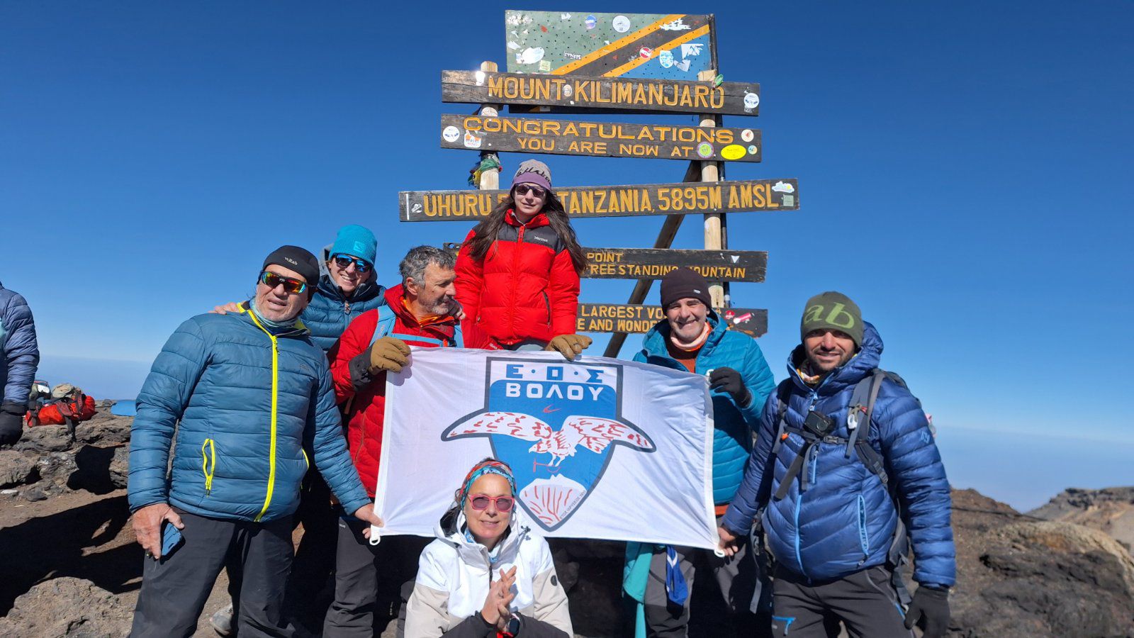 Με επιτυχία ολοκληρώθηκε η ορειβατική αποστολή του ΕΟΣ Βόλου στην ψηλότερη κορφή της Αφρικής, στο όρος Κιλιμάντζαρο και στα 5895 μέτρα υψόμετρο, όπως ανακοίνωσε σχετικά ο σύλλογος.