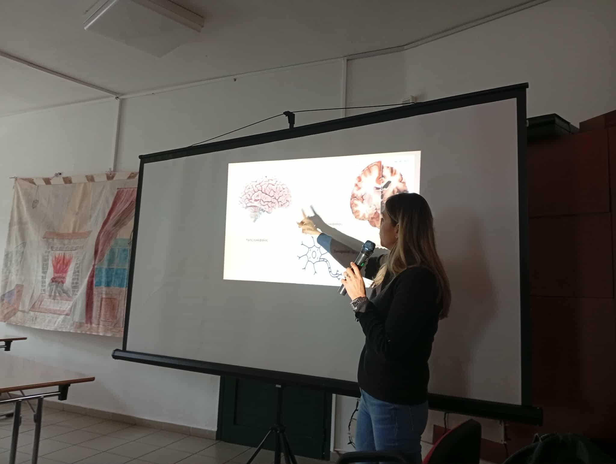 Eπίσκεψη στο 1ο Δημοτικό Σχολείο Διμηνίου Αισωνίας όπου μαθητές και εκπαιδευτικοί ενημερώθηκαν για την άνοια, τα συμπτώματα, την αντιμετώπιση και τους τρόπους πρόληψης, πραγματοποιήθηκε σήμερα Πέμπτη 6 Νοεμβρίου από την Ελληνική Εταιρεία Νόσου Αλτσχάϊμερ και Συγγενών Διαταραχών Βόλου.