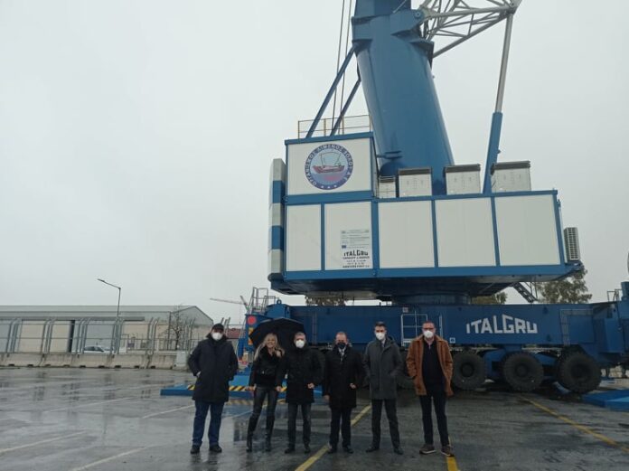 Τέλος, ενημερώθηκε για τις δυνατότητες του νέου αυτοκινούμενου γερανού, συνολικής δαπάνης 2.980.000ευρώ και χρηματοδότηση κατά 35% από το ΕΣΠΑ Θεσσαλίας 2014 – 2020 και το υπόλοιπο από ίδιους πόρους του ΟΛΒ. Ο γερανός, παραλήφθηκε τον Αύγουστο του 2021 από τον ΟΛΒ κι αποτελεί την κορωνίδα των μηχανημάτων του Οργανισμού. Έχει δυνατότητα λειτουργίας είτε μέσω κινητήρα είτε μέσω ηλεκτρικής σύνδεσης από εξωτερική παροχή είναι ανυψωτικής ικανότητας 125τ. κι είναι ο μεγαλύτερος σε δυναμικότητα γερανός που διαθέτει ο λιμένας Βόλου.