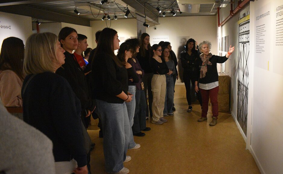 Ακολούθησε επίσκεψη και ξενάγηση από μέλος της Ο.Π.Ι.Β.Ο στην έκθεση, στην οποία οι μαθητές και οι μαθήτριες γνώρισαν μέσω προφορικών και γραπτών μαρτυριών την άγνωστη ιστορία των Μαγνησιωτών ομήρων στα ναζιστικά στρατόπεδα καταναγκαστικής εργασίας.